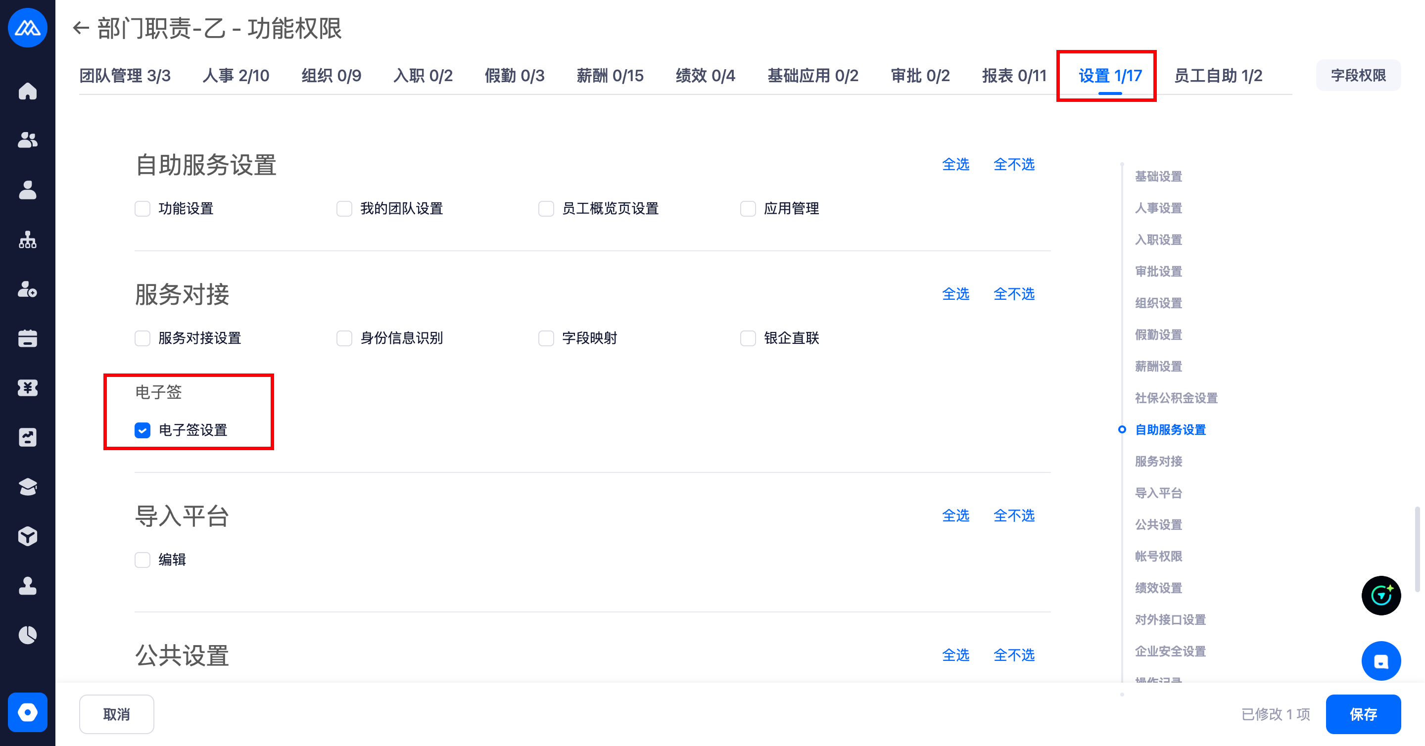 首先,打开电子签开关(入口:设置-服务对接-电子签);