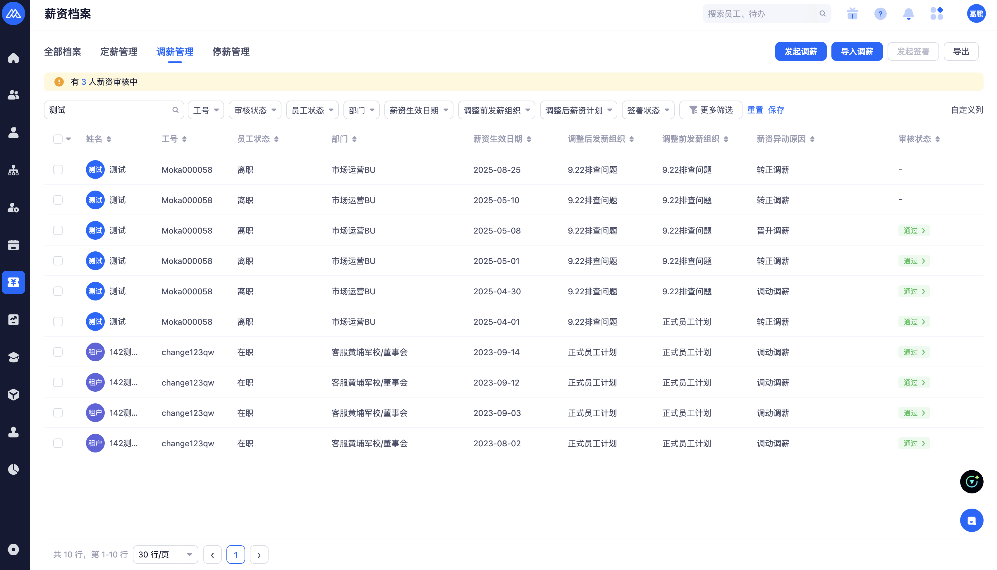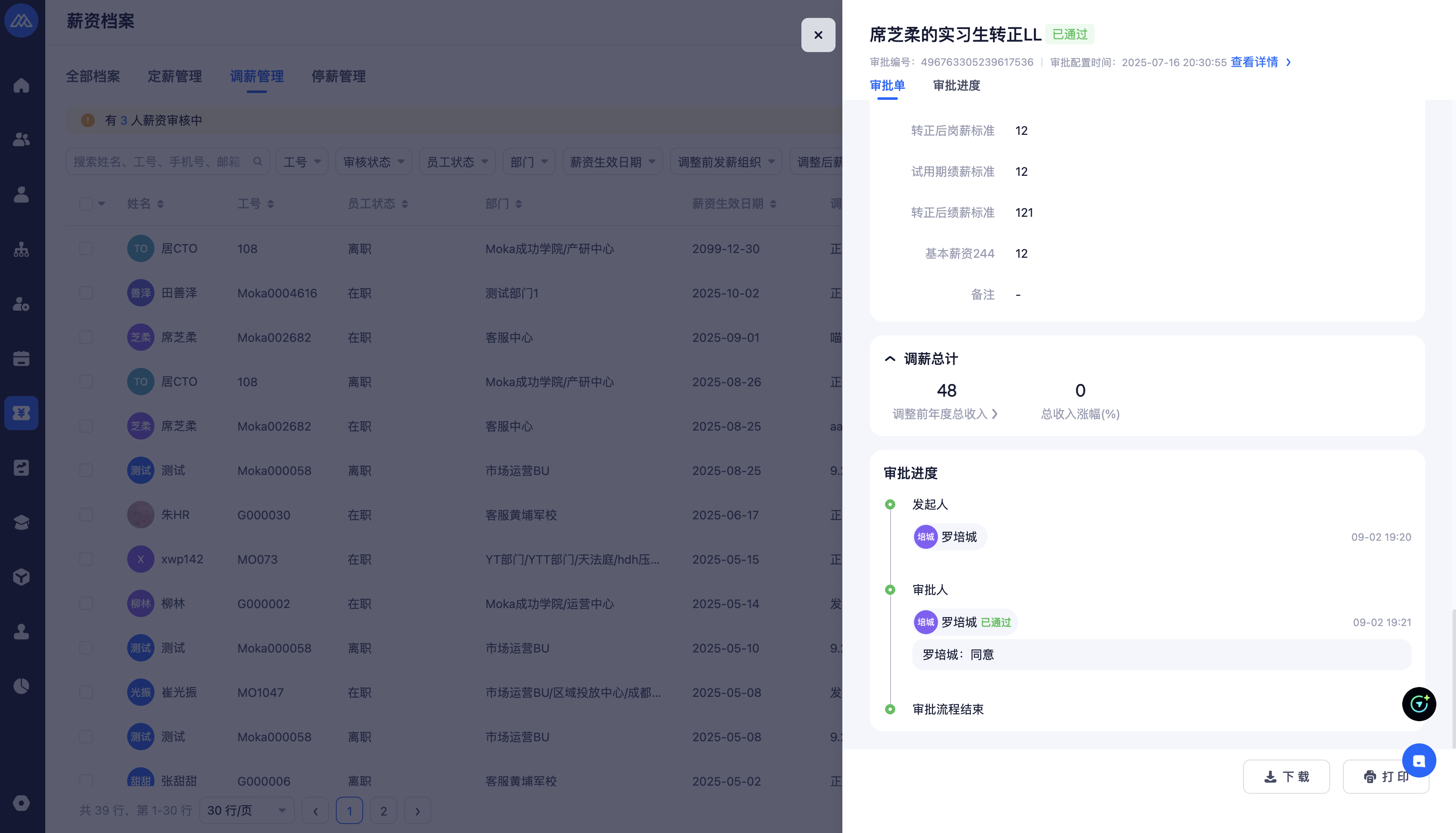 调薪审批中,可以快捷跳转调薪管理列表,显示权限下调薪记录。