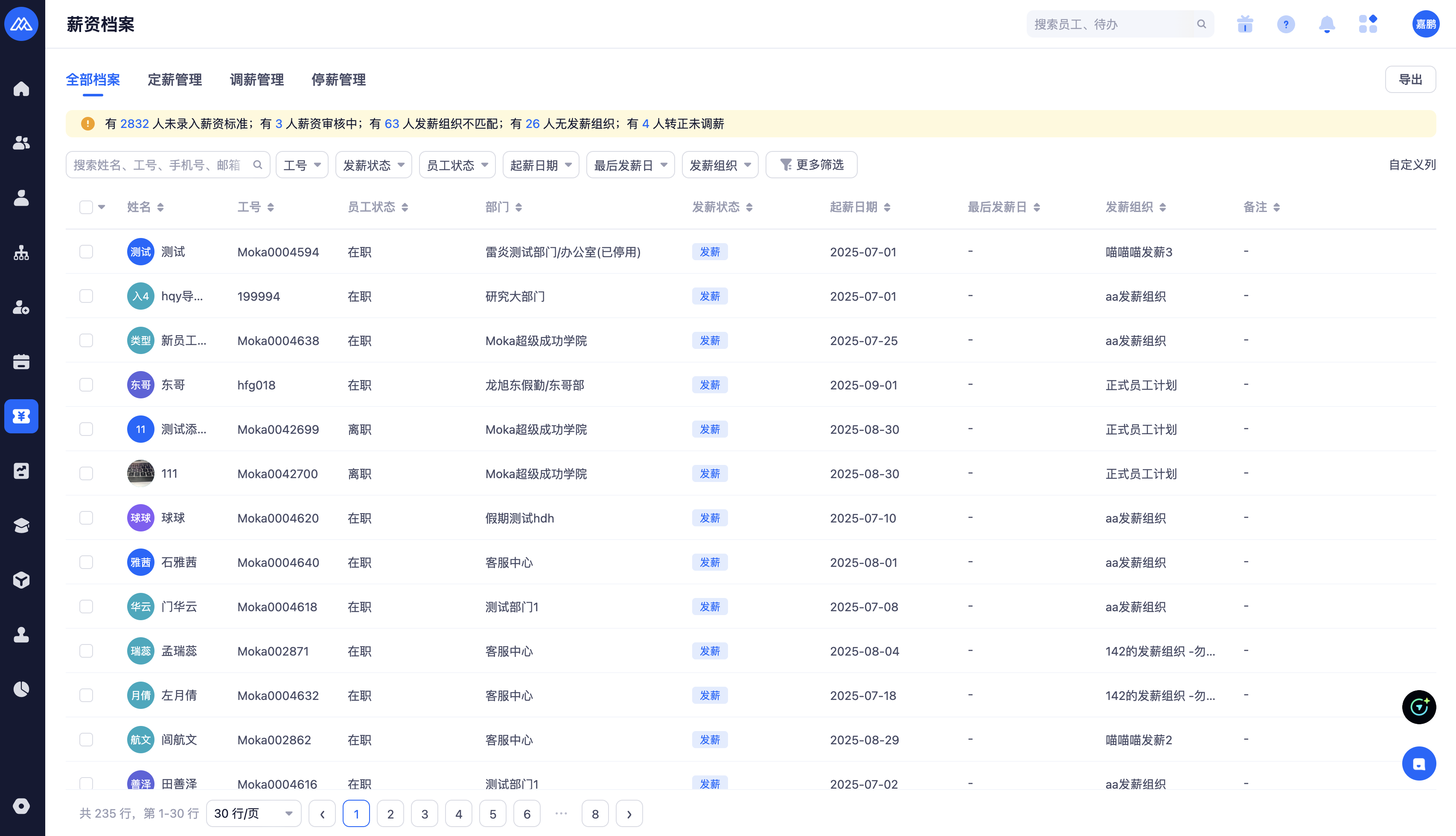 发薪人员中,可以管理企业下,当前发薪状态的员工。