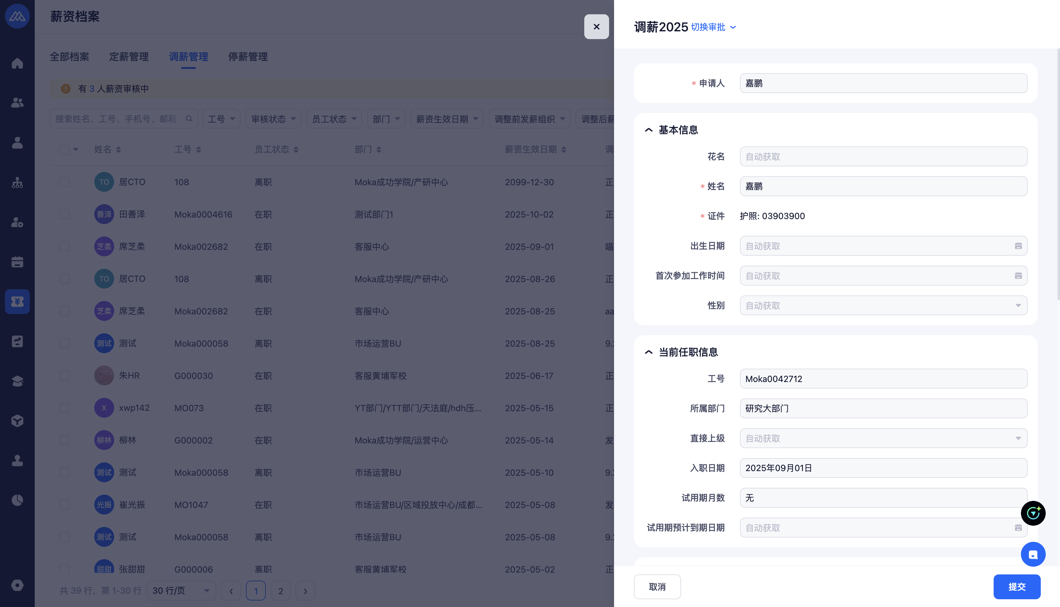 权限控制:会根据当前登录用户的调薪管理功能所对应的管理范围,匹配员工所属调整前发薪组织