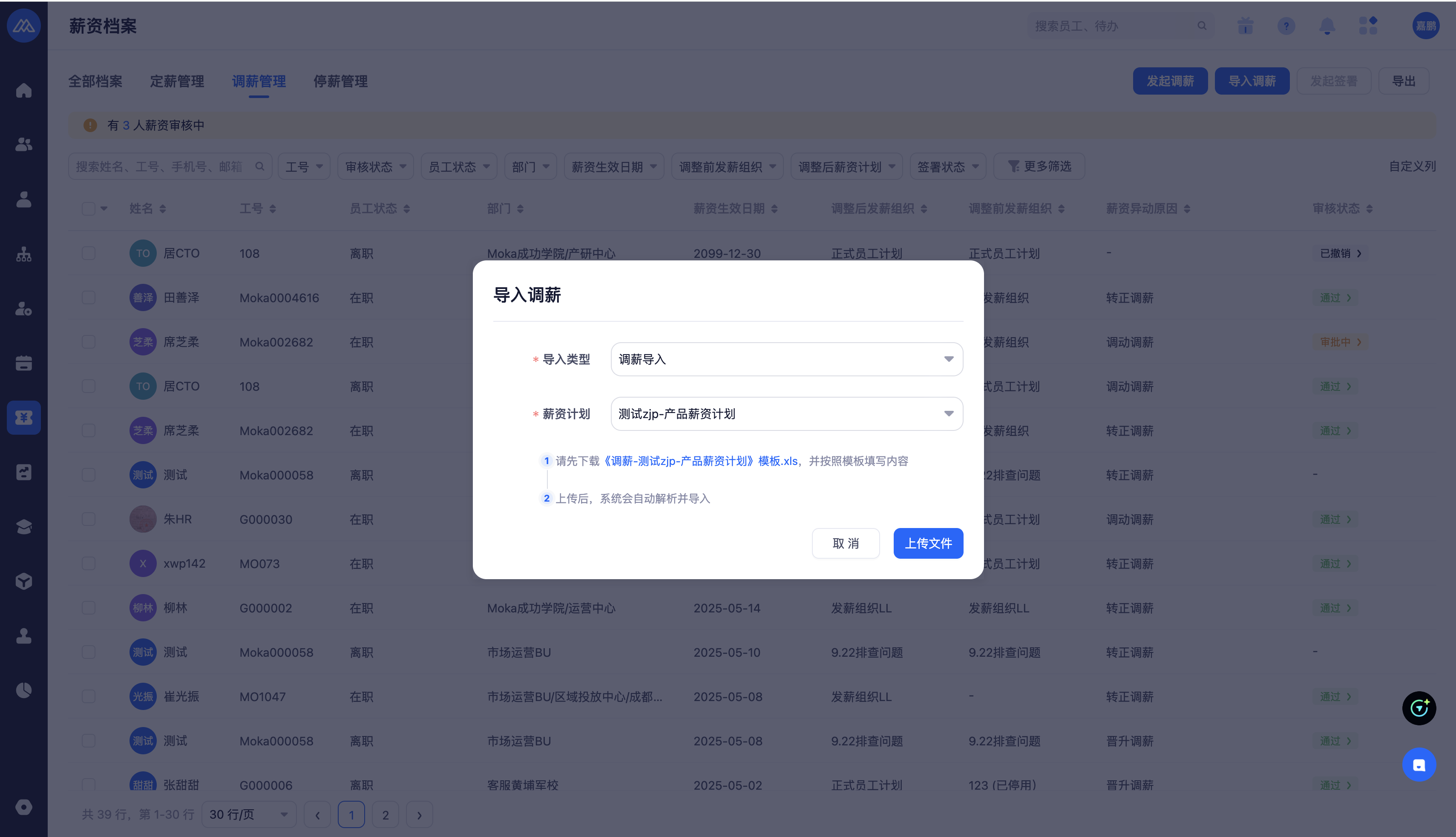 未录入薪资标准人员中,可以发起定薪申请,补充完善员工的档案档案标准,支持批量导入。