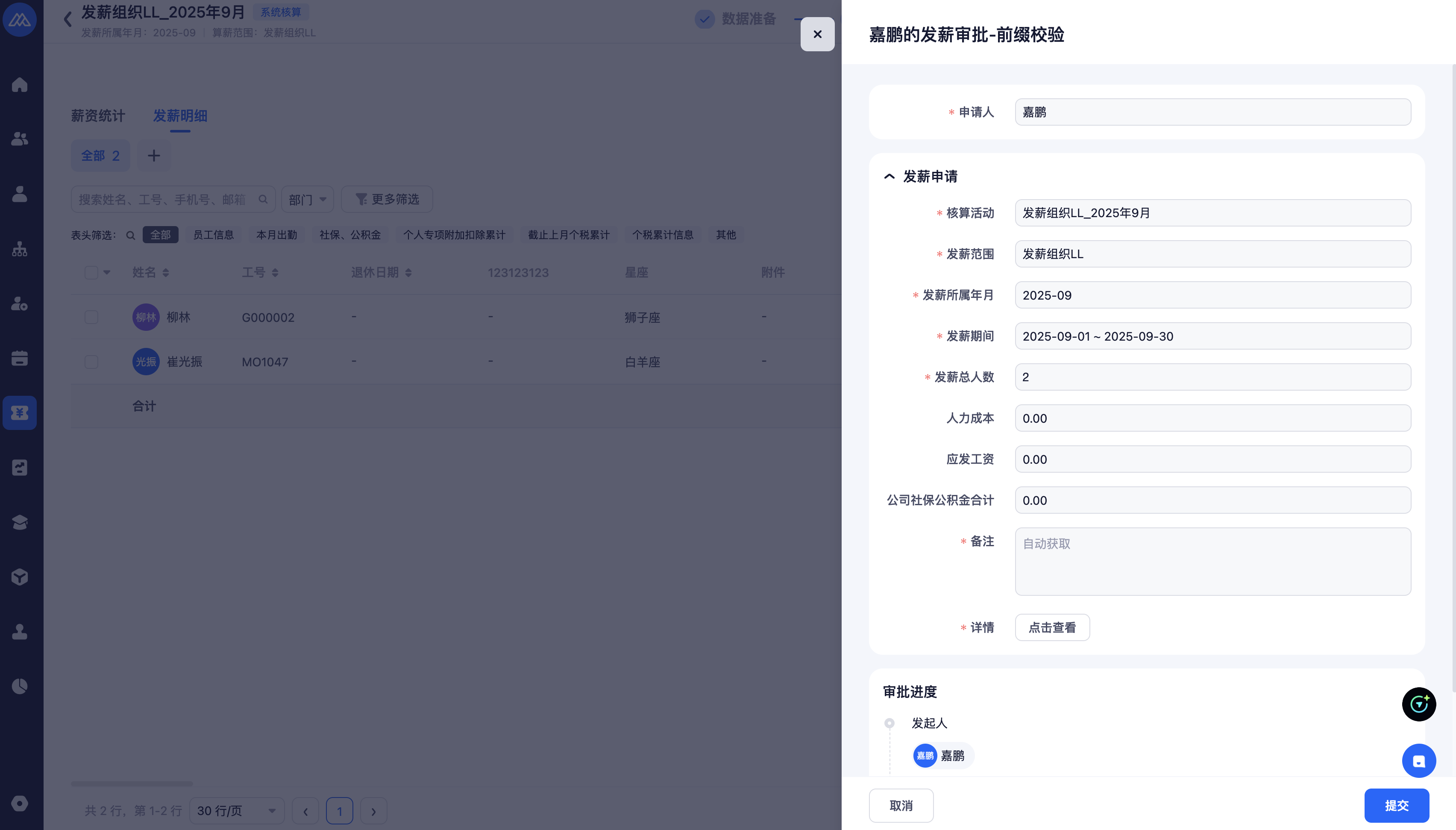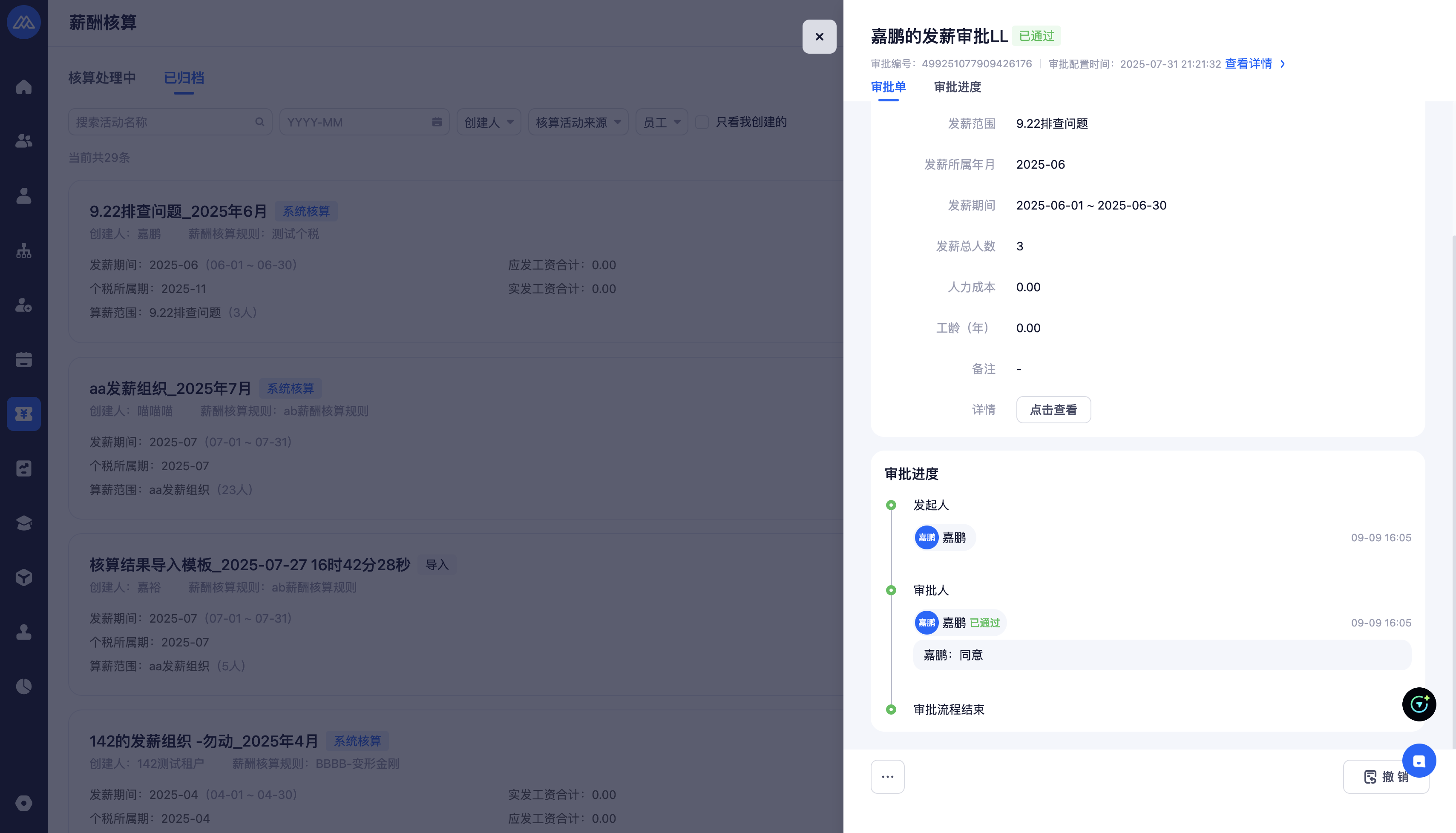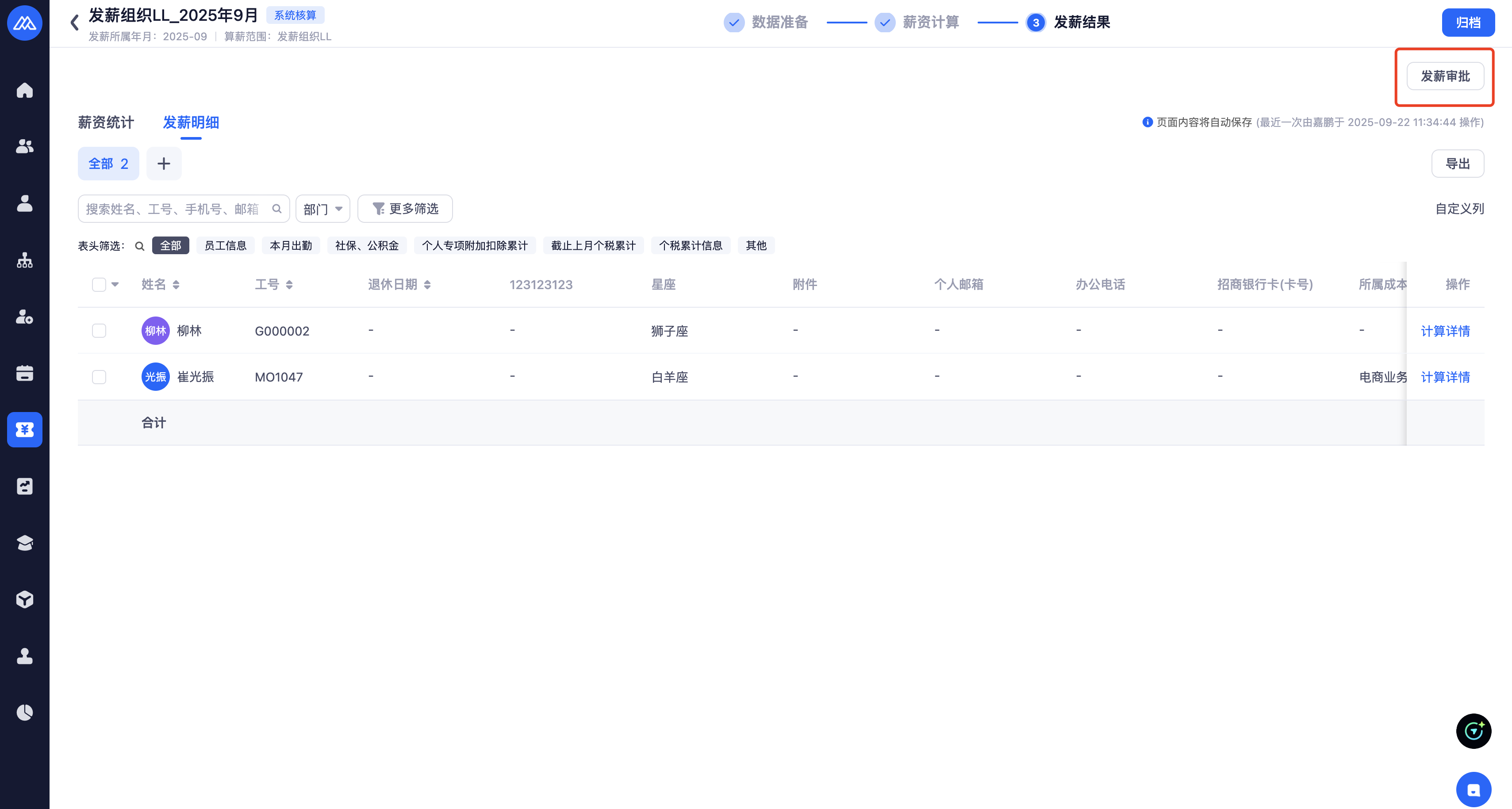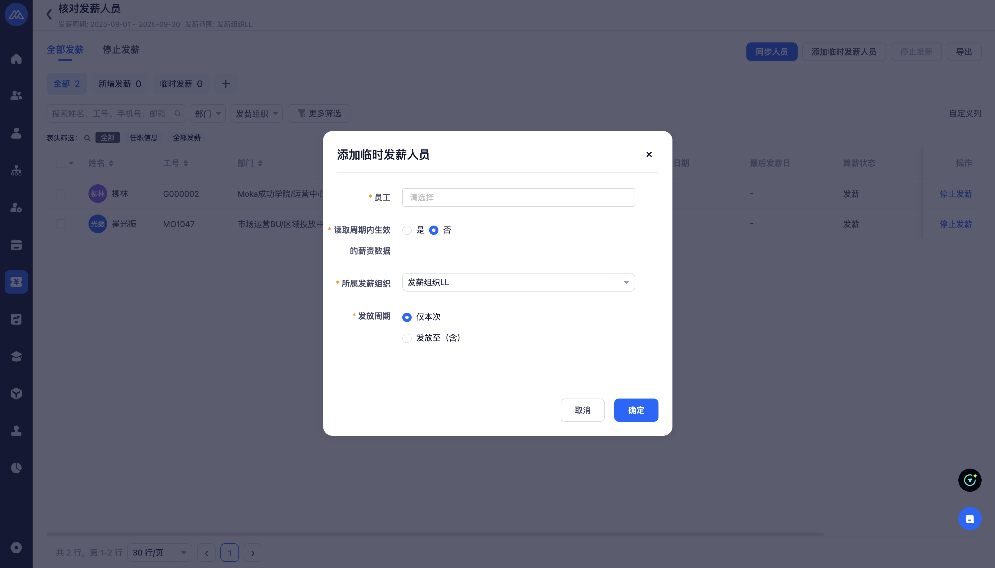 支持设置发放周期,后续在周期内的核算活动都会自动同步该人员