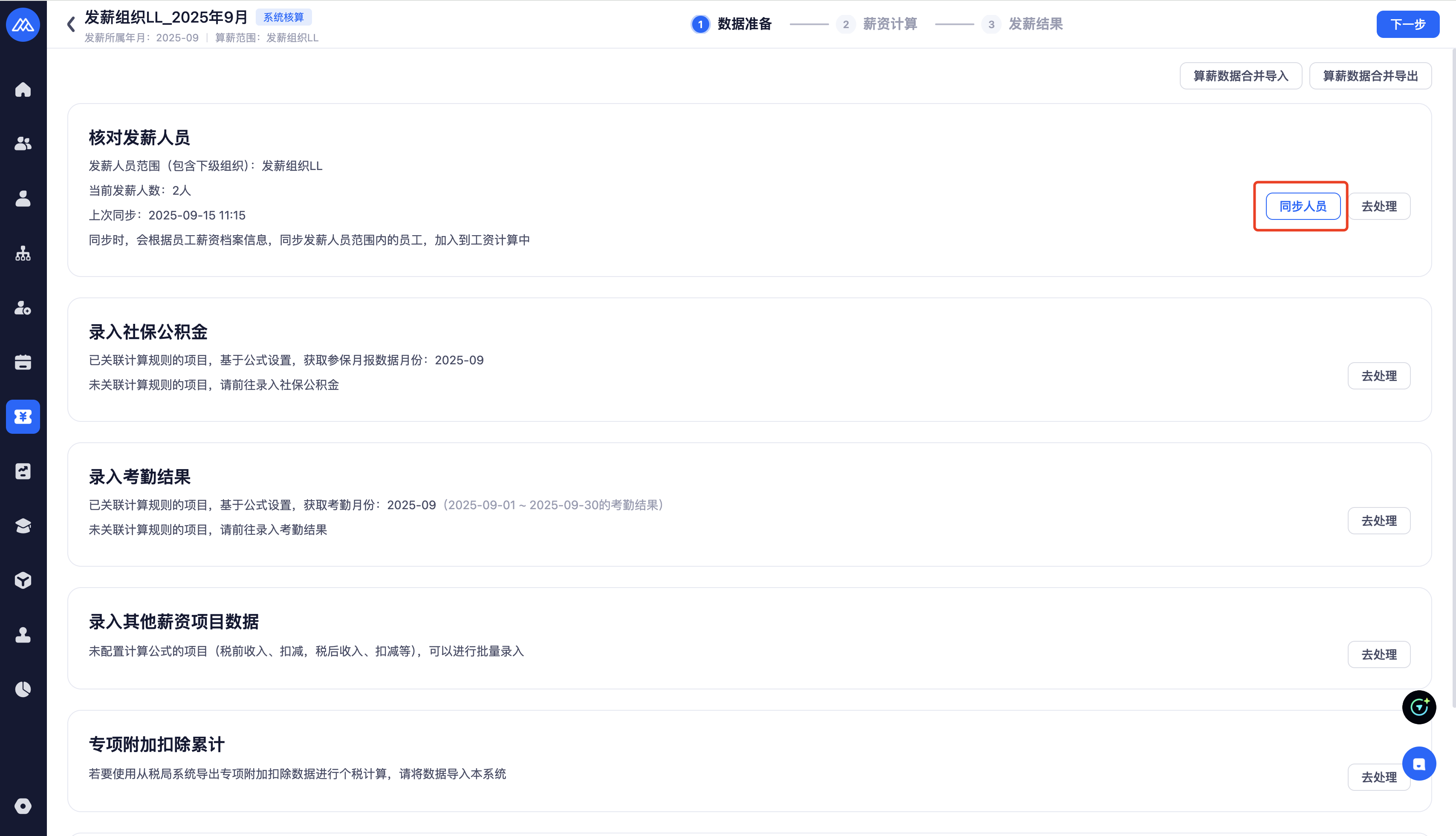 3、点击同步人员根据算薪范围 同步指定发薪周期的所有人员