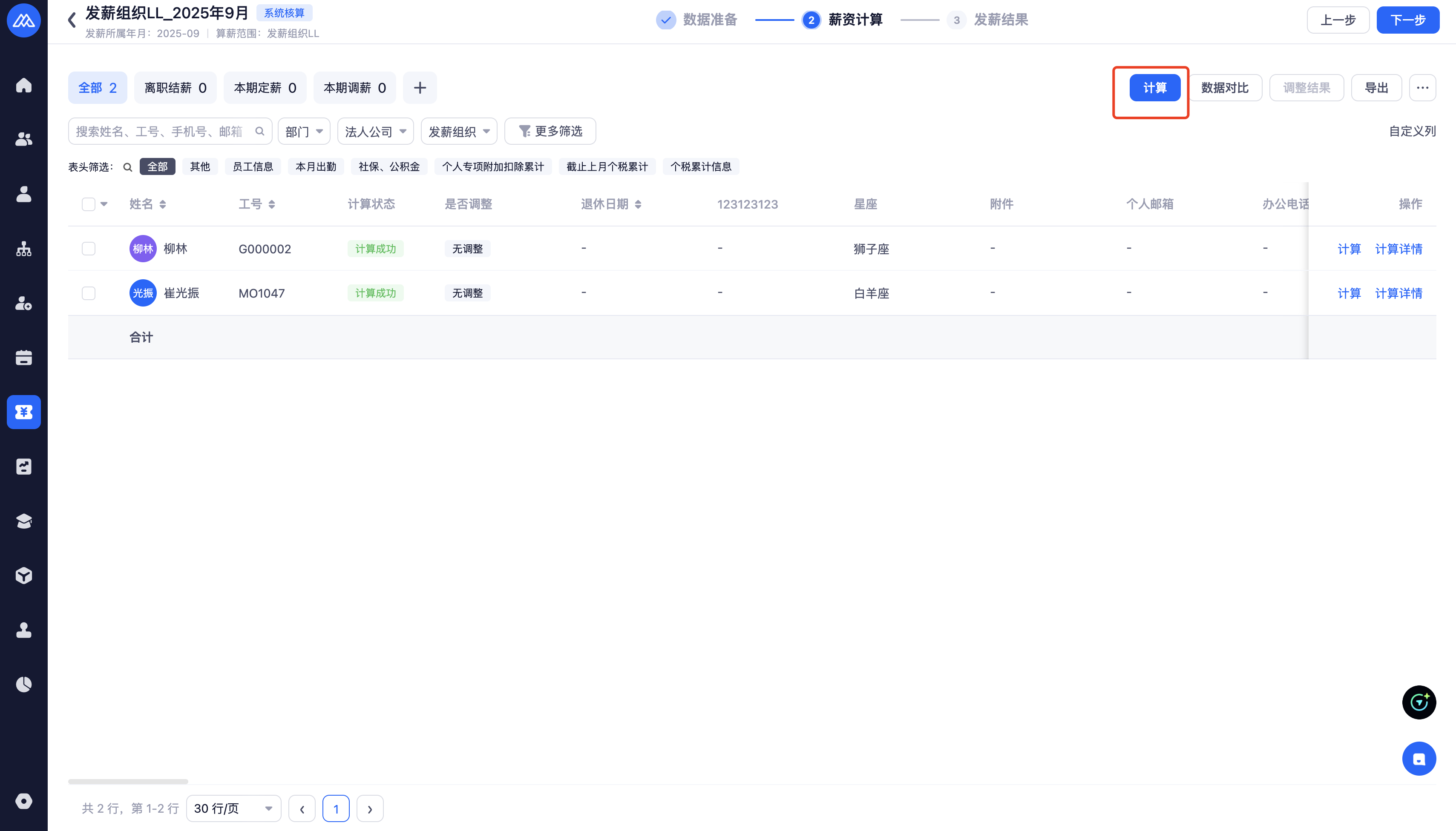 1、选择对应核算规则,算薪范围(若当前算薪规则设置中算薪范围选择为"核算时选择"时则此时进行部门选择)和发薪月份后发起。