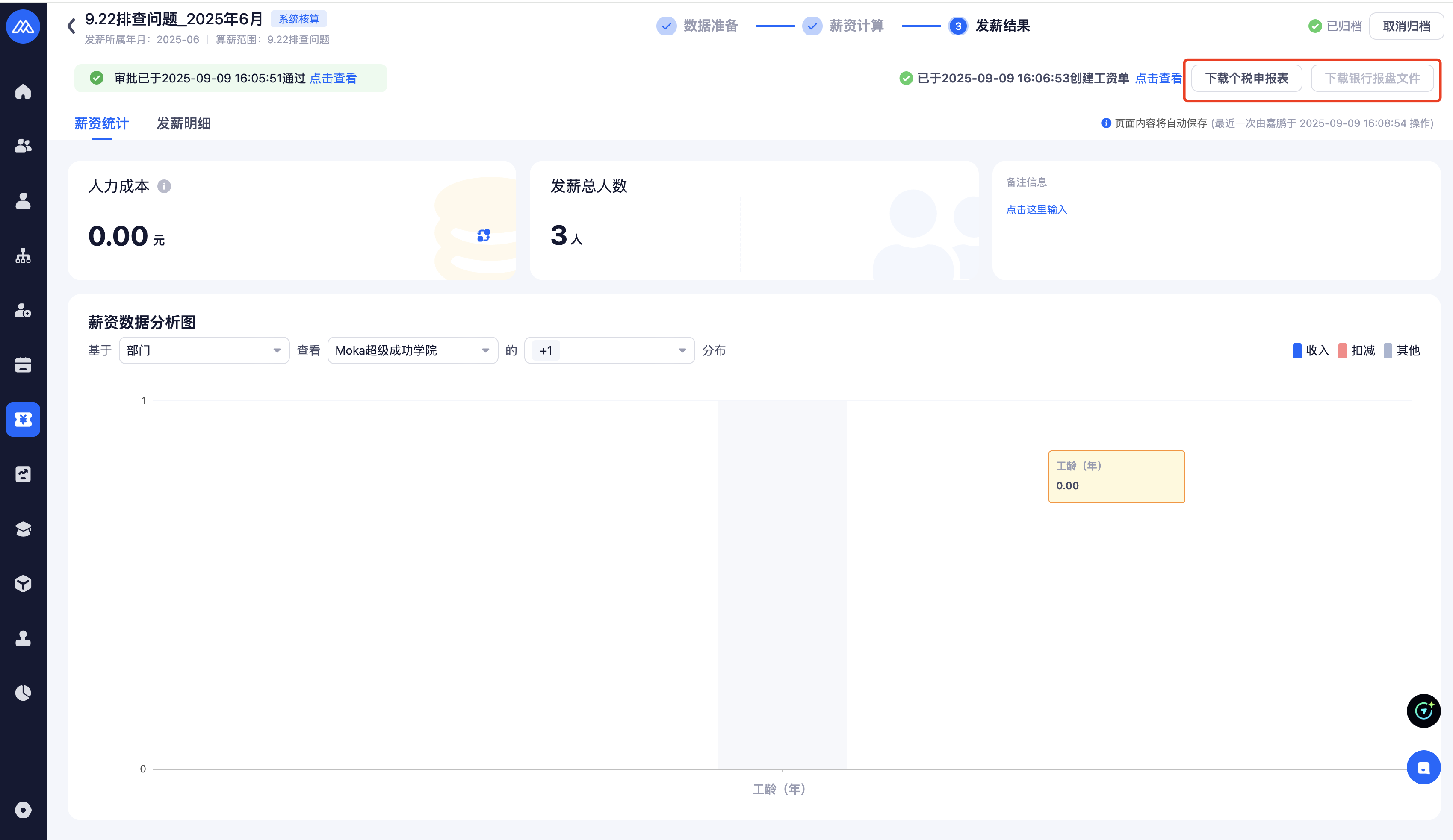 8、在审批通过后可下载个税申报表和银行包盘文件