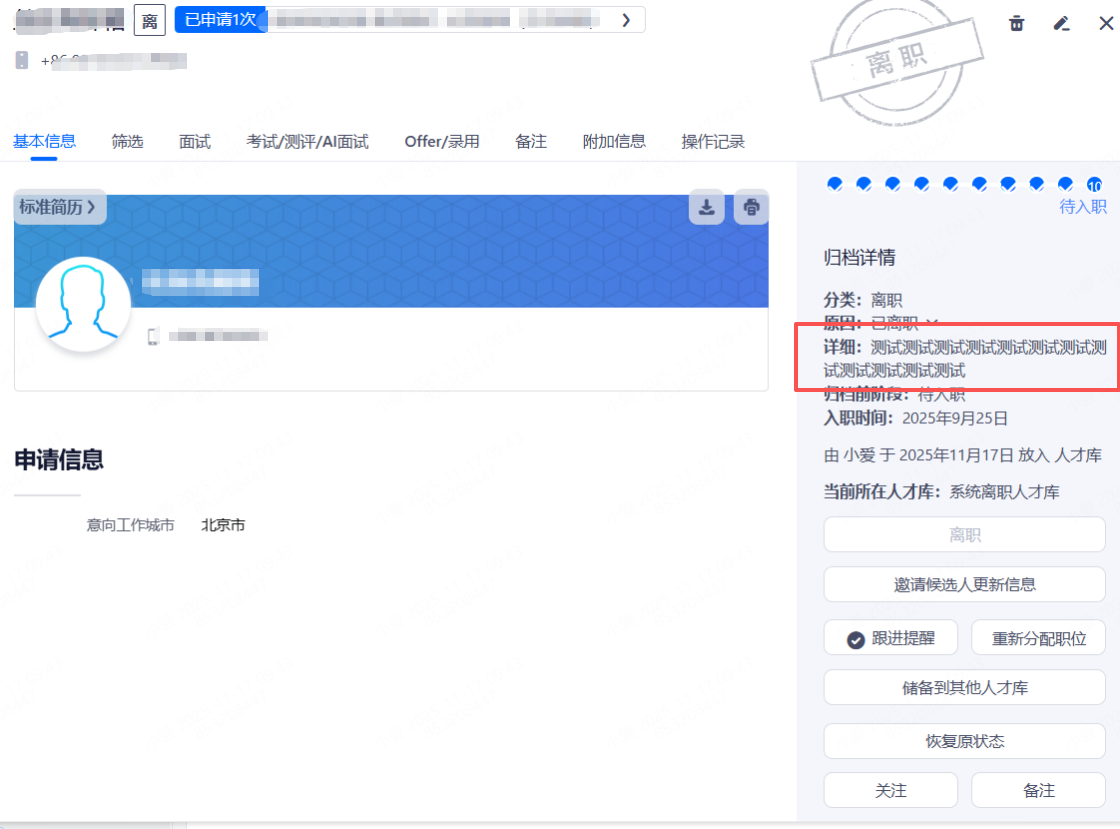 离职详细原因包含敏感信息,不希望回写到ATS的候选人信息