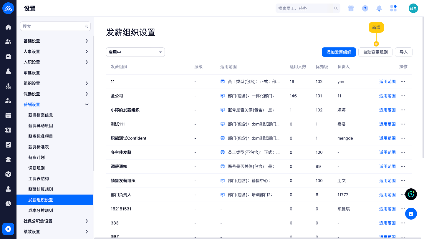 发薪组织自动变更