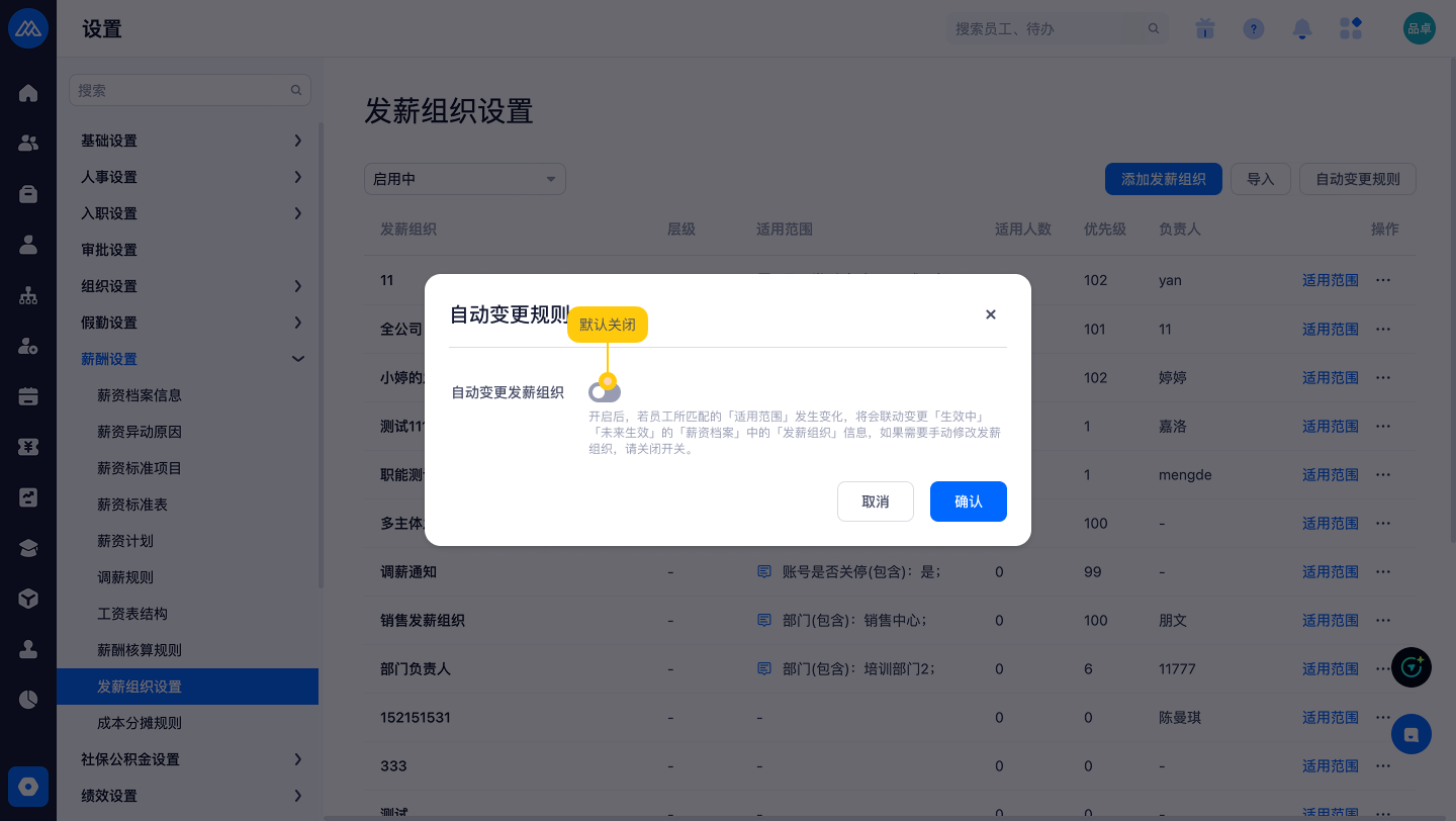 开关:自动变更发薪组织