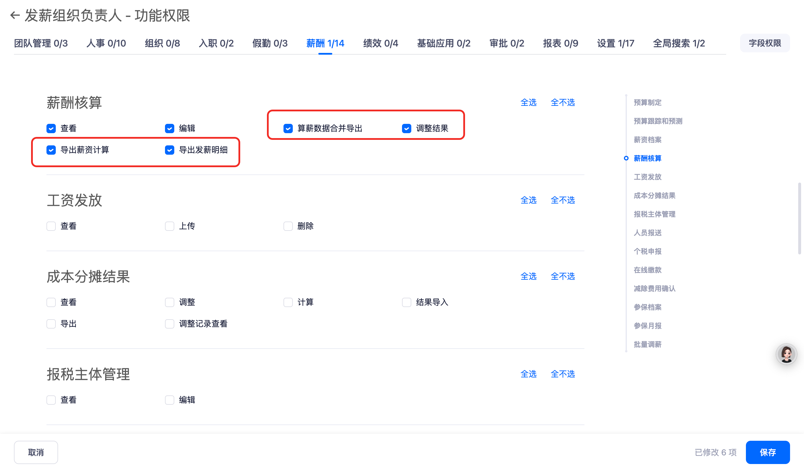 升级内容 1:薪酬核算活动增加功能权限控制