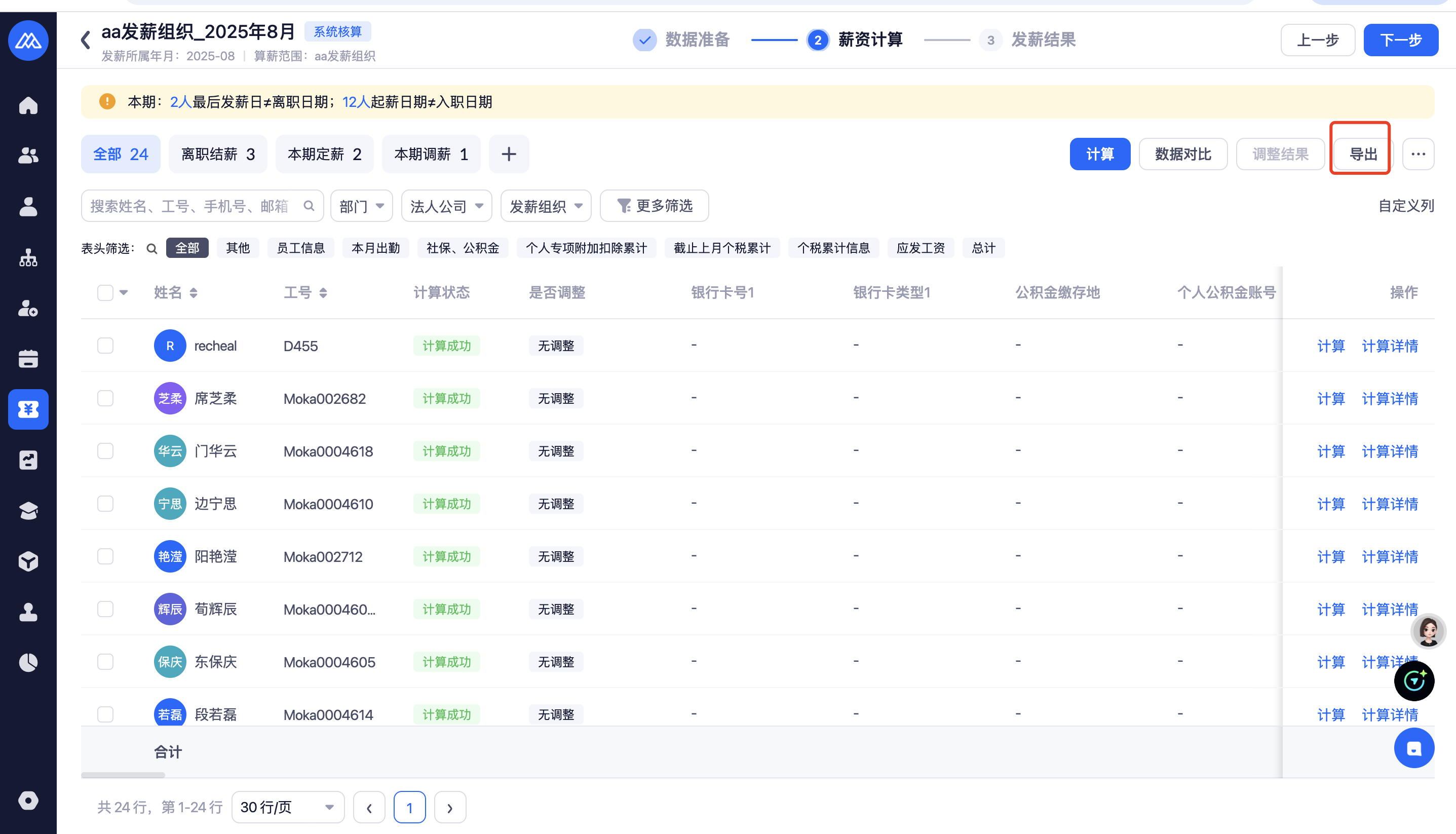 导出薪资计算 :之前有薪酬核算活动查看权限的用户默认开启 |