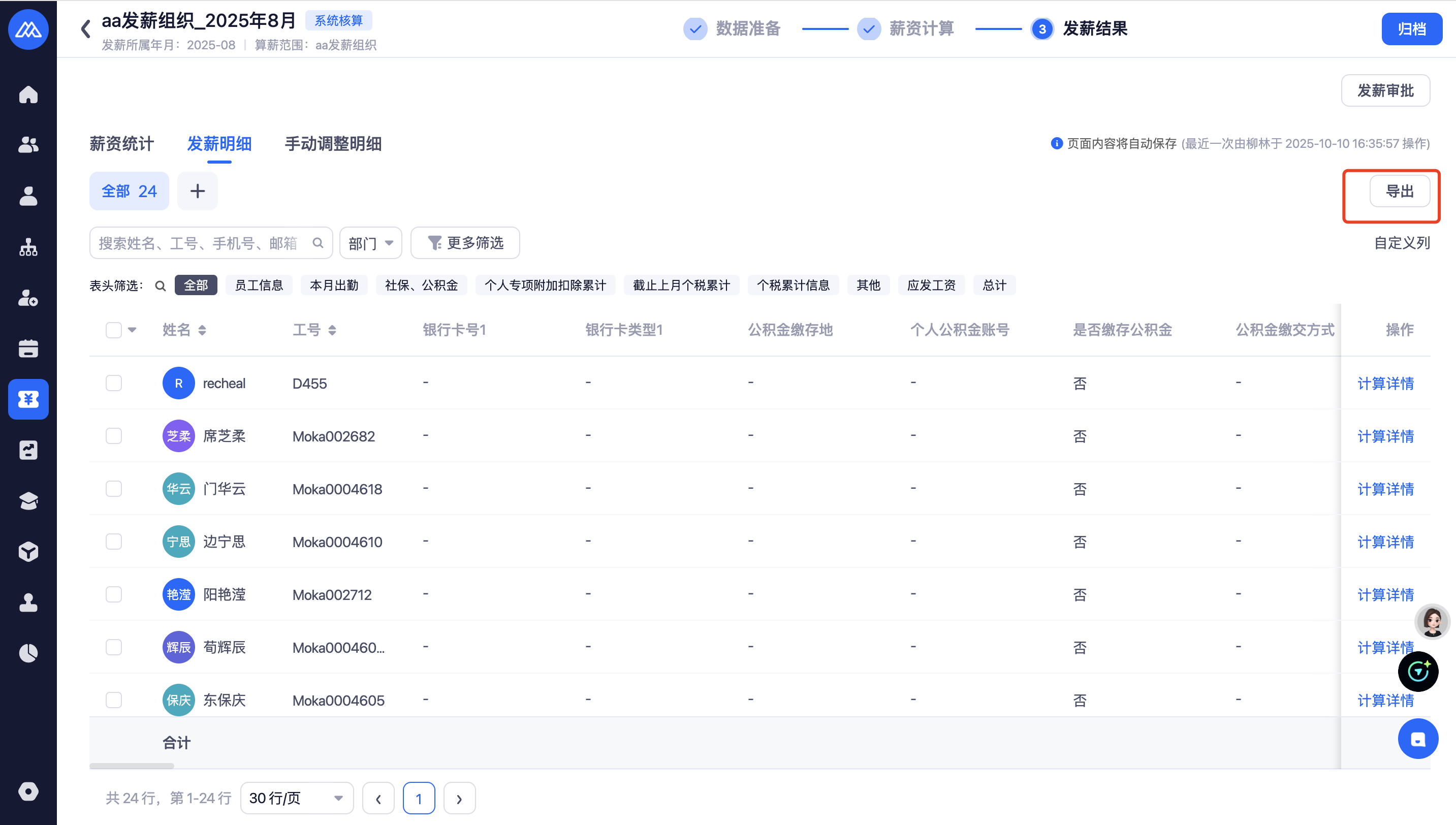 导出发薪明细 :之前有薪酬核算活动查看权限的用户默认开启 |