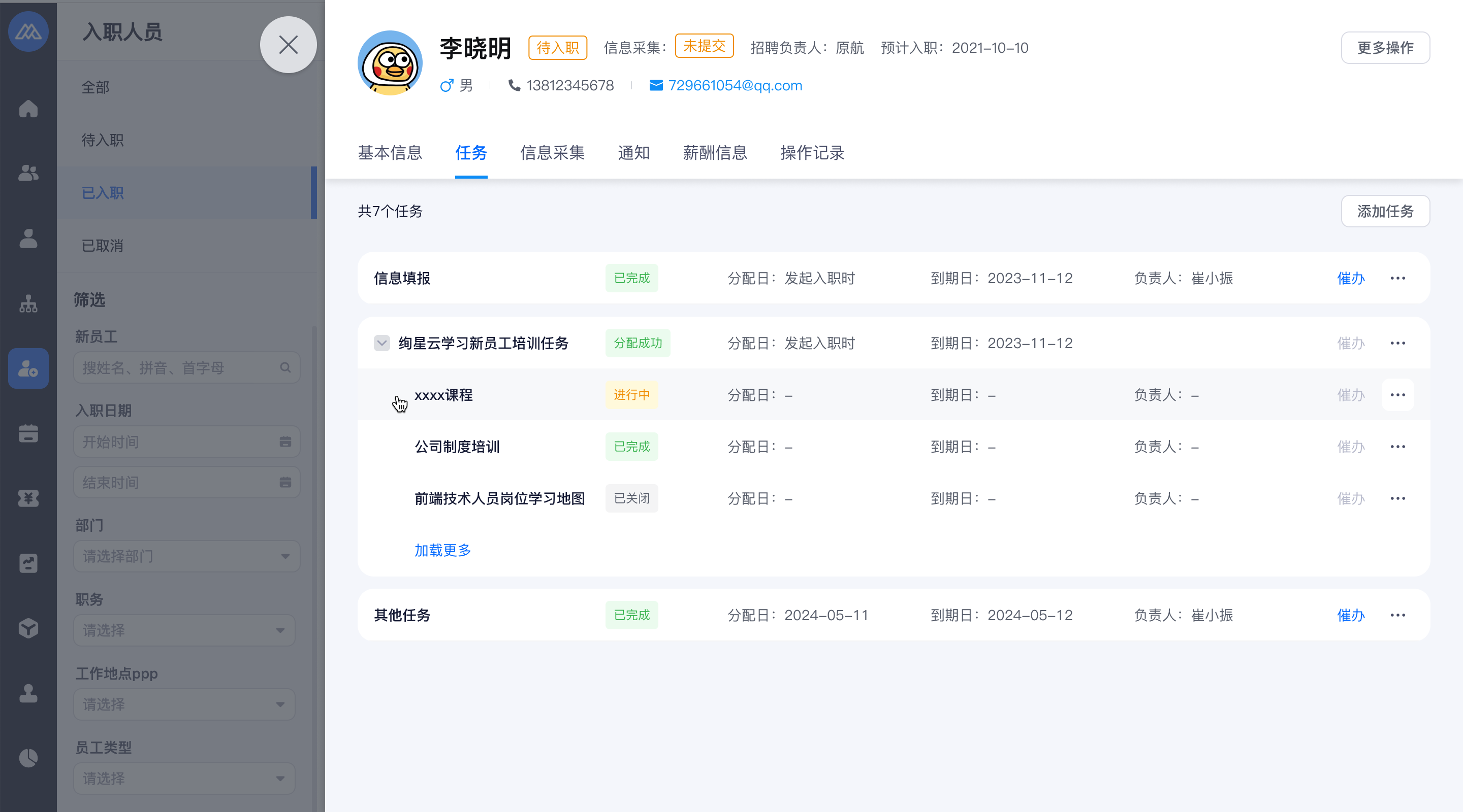 入职培训任务状态有: