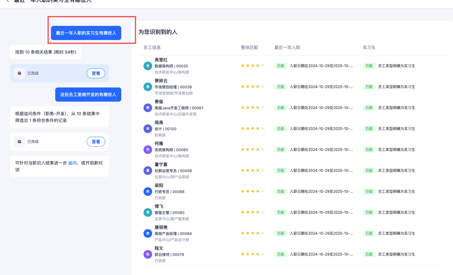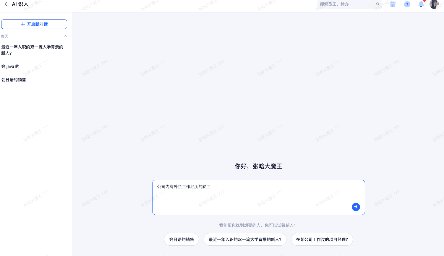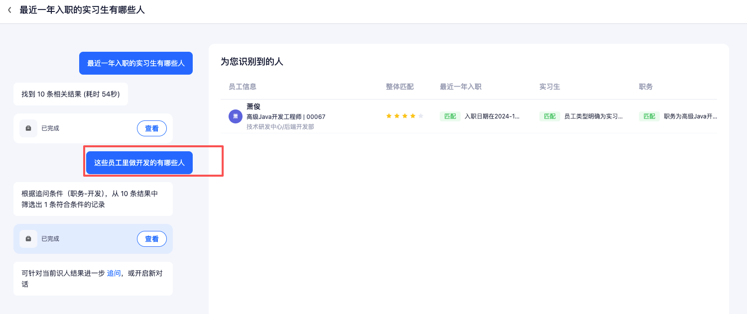 解决业务场景中系统筛选查询条件不足或无法具象系统查询规则的企业内找人(如:想要组建一个AI新团队,哪些人可以胜任?)