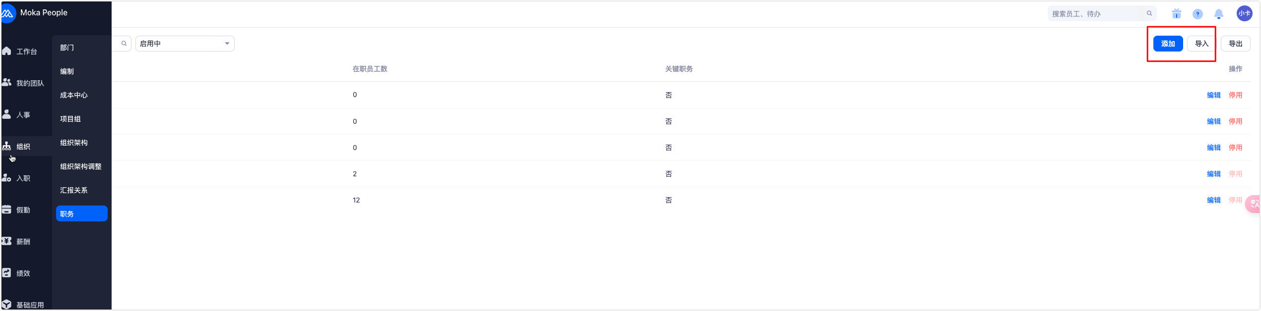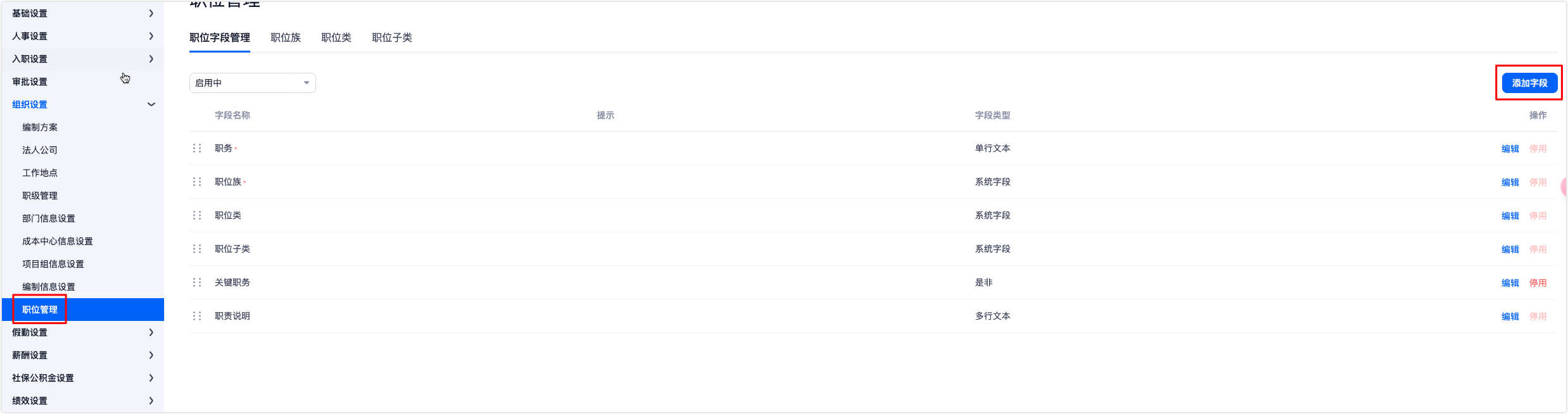 路径:设置-组织设置-职位管理,按需新增职务字段