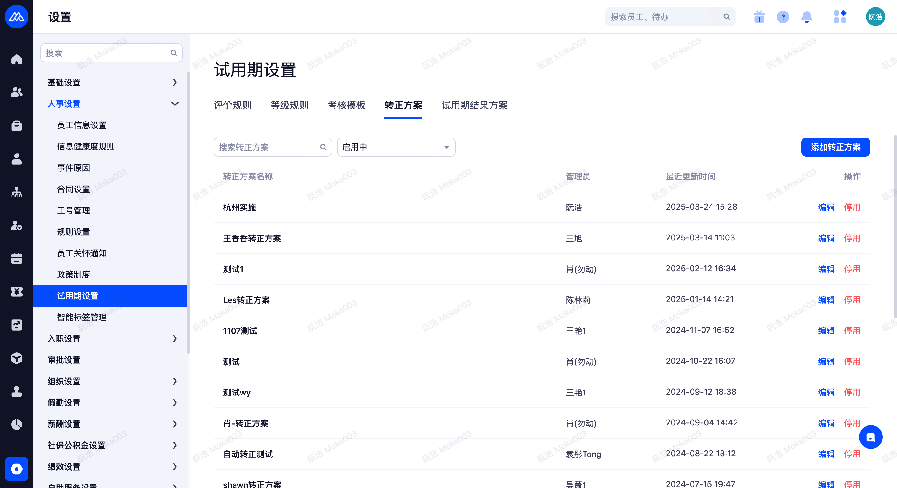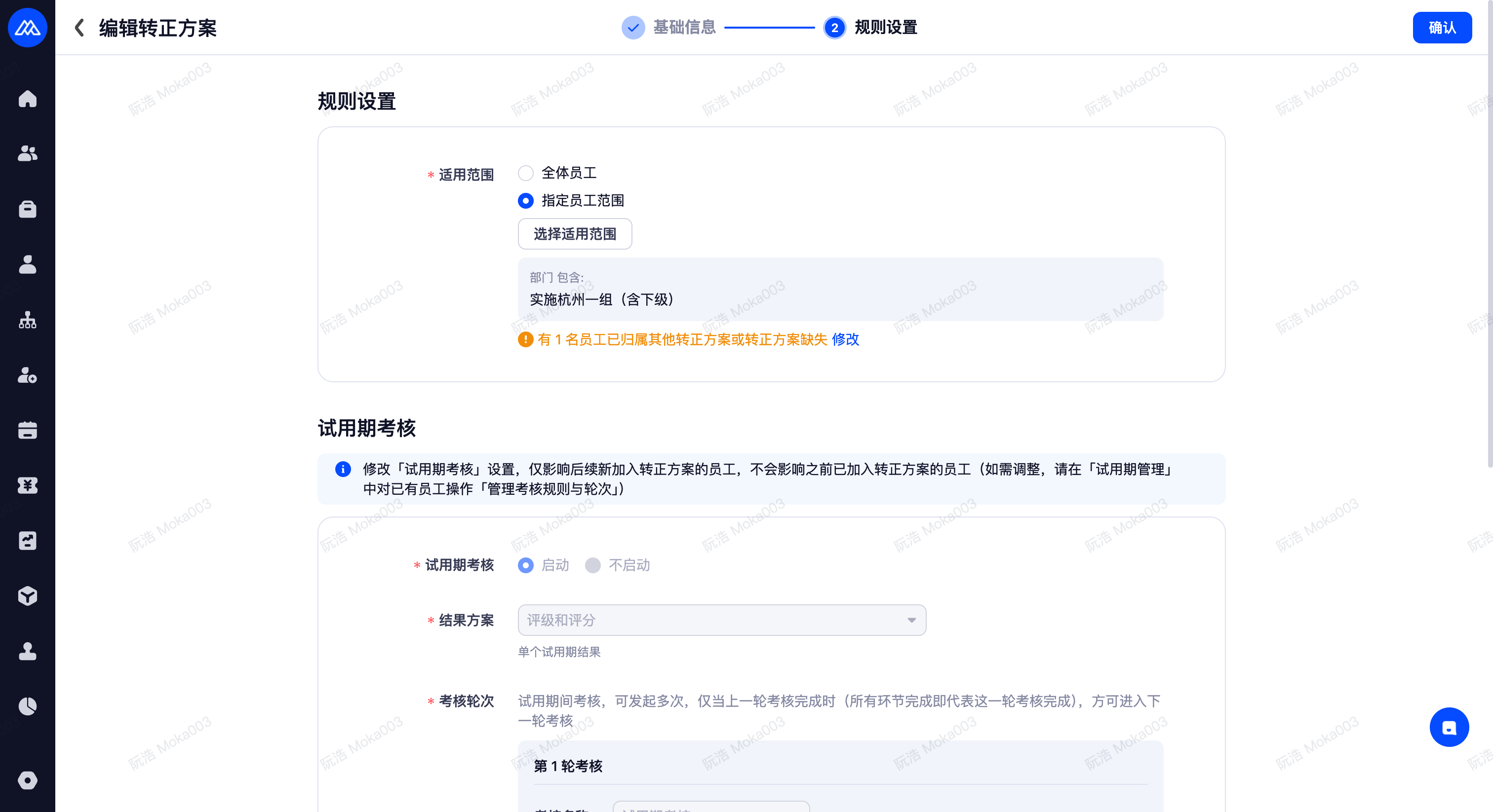 试用期管理功能的具体配置请参考Moka People用户中心中的【如何进行试用期管理】https://mokapeople.moyincloud.com/d/1707289644633264129.html