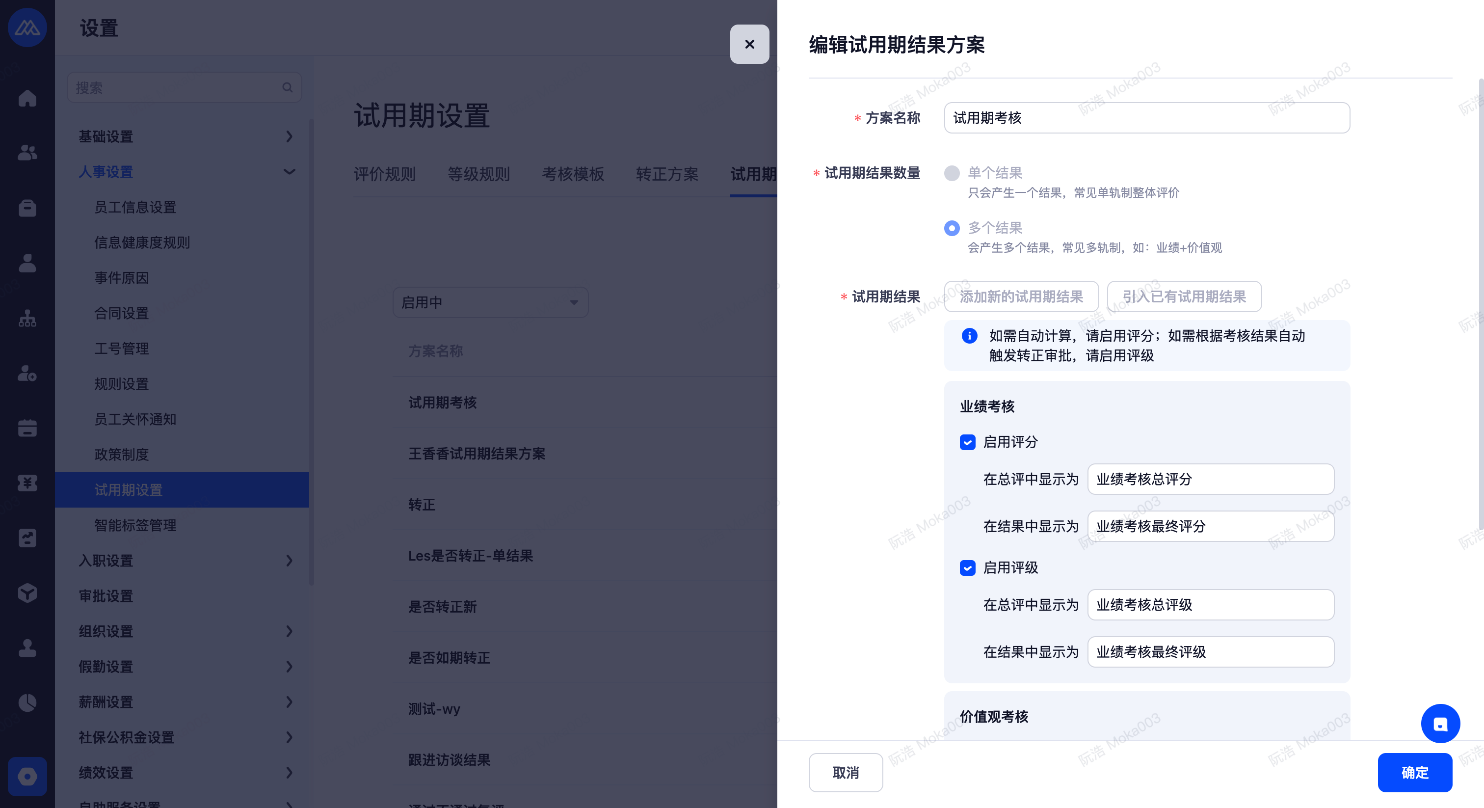 系统路径:设置-人事设置-试用期设置-试用期结果方案