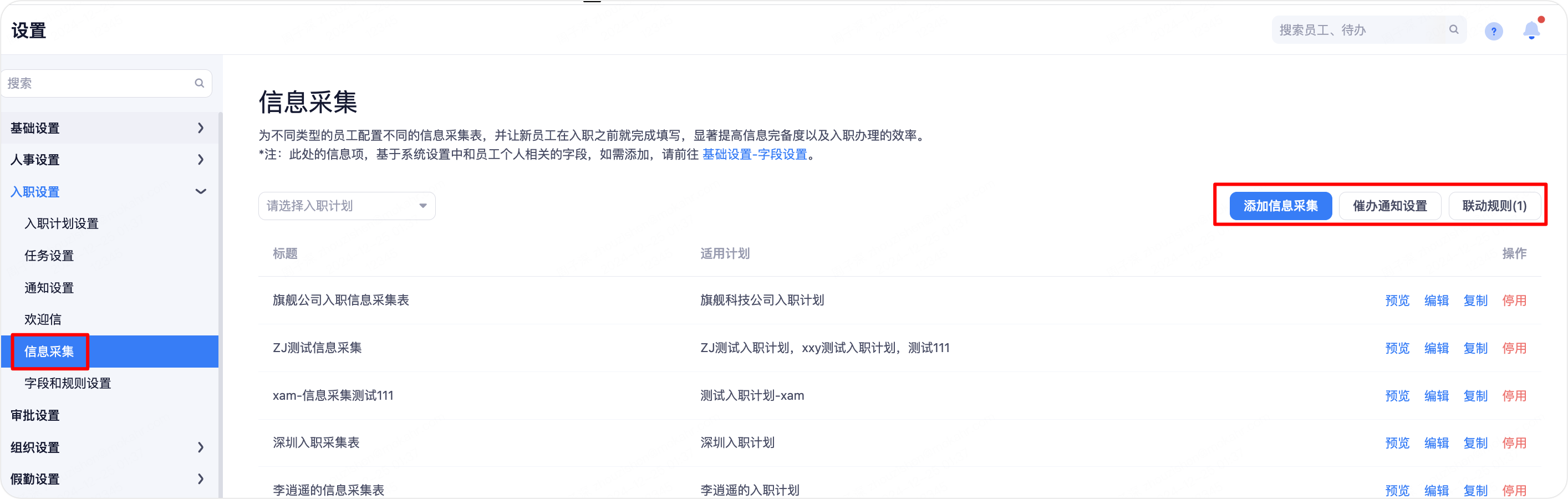 为不同类型的员工配置不同的信息采集表,并让新员工在入职之前就完成填写,显著提高信息完备度以及入职办理的效率。