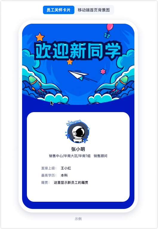 配置入职欢迎卡片,在新员工入职后系统自动触发给相关用户。