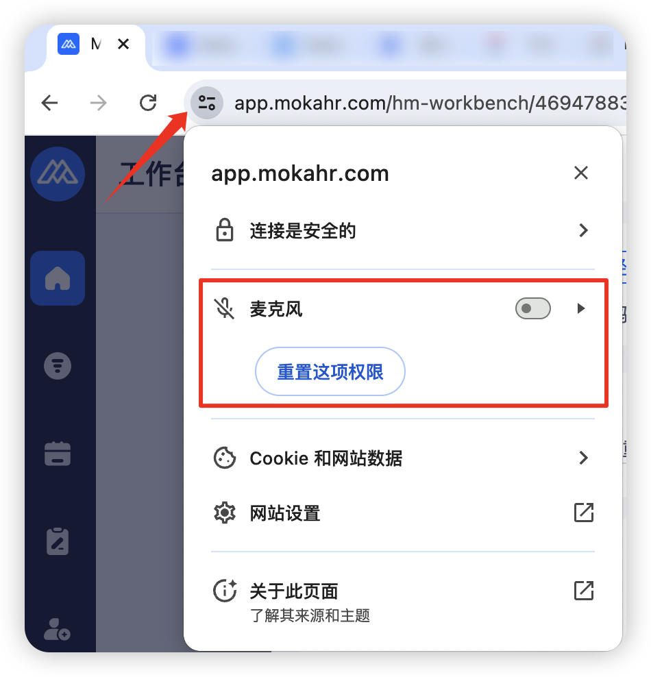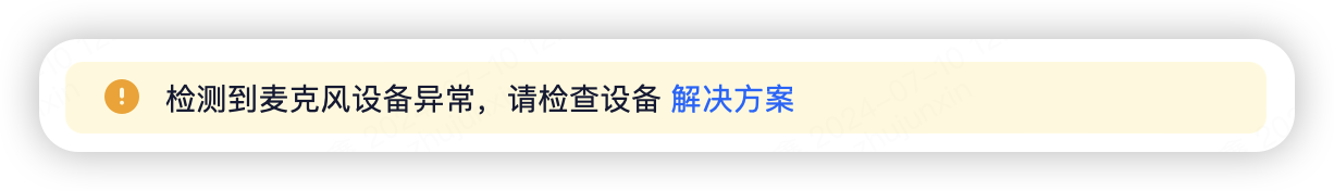 当遇到下面提示时,说明浏览器麦克风开启异常,请按照下述步骤检查
