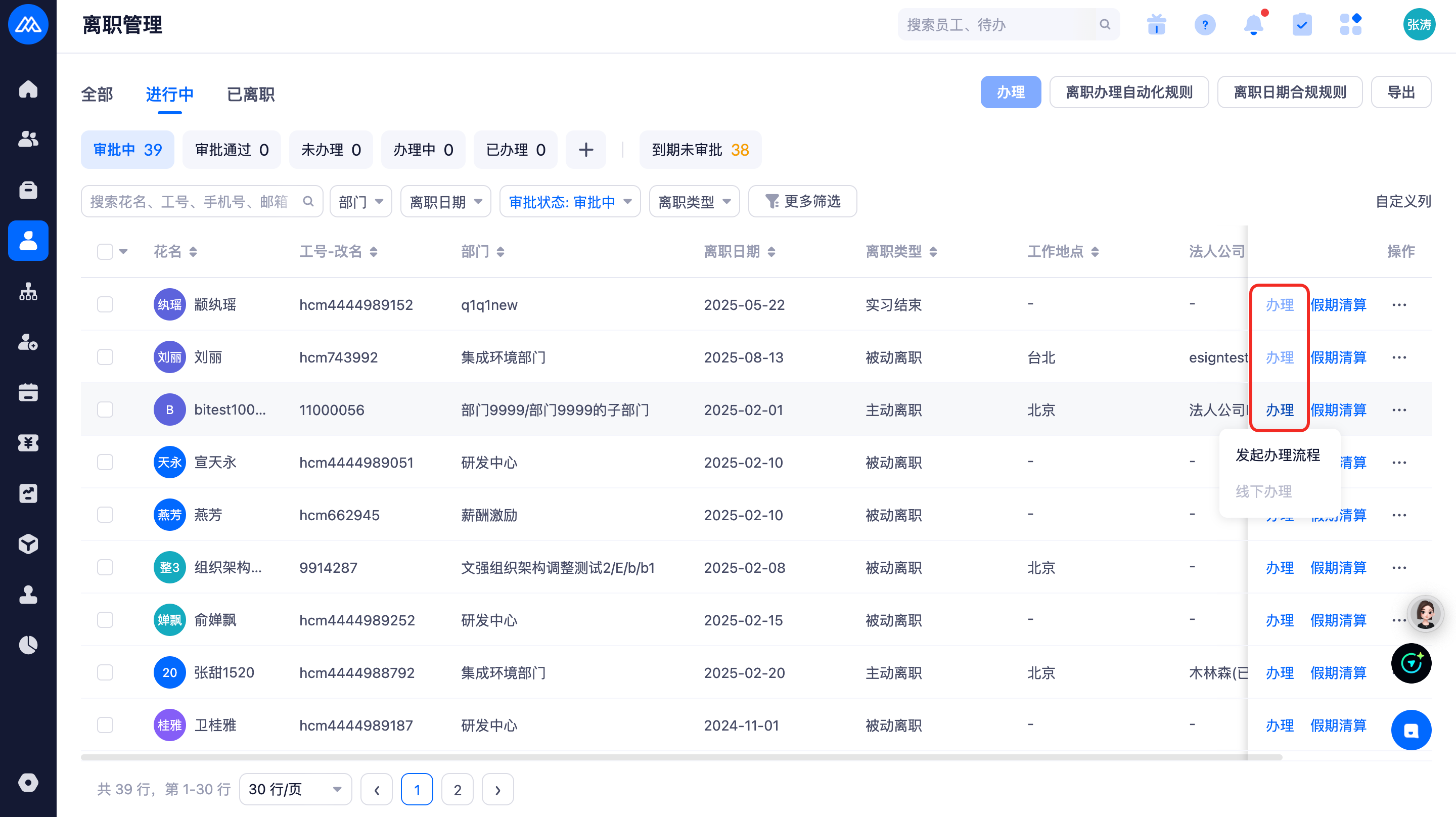 自动发起离职办理时,也会按新的规则自动发起符合发起离职办理的离职记录