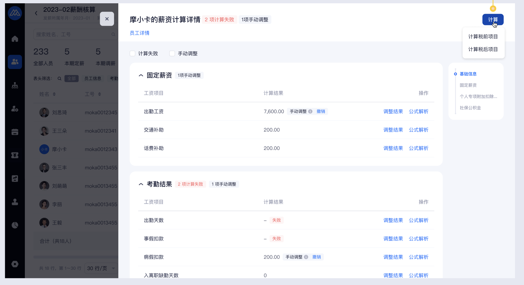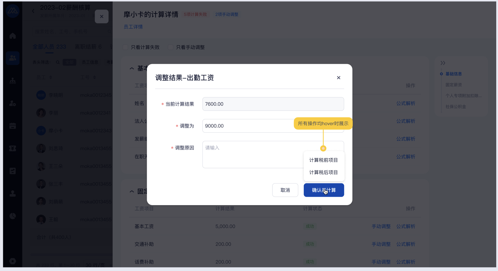 调整结果弹窗增加“计算税前”:计算该人员税前薪资项目