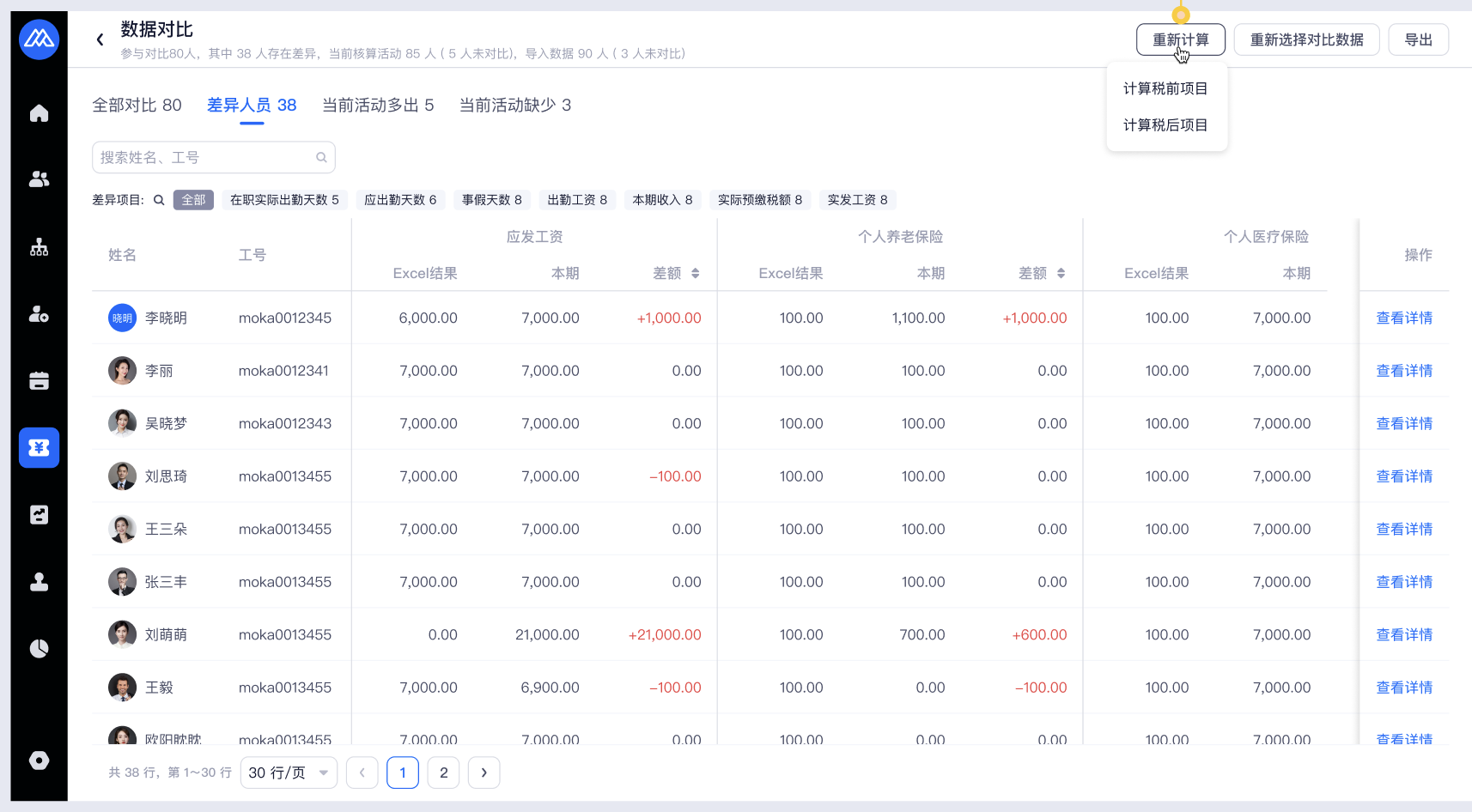 数据对比结果页增加“计算税前”:计算该人员税前薪资项目