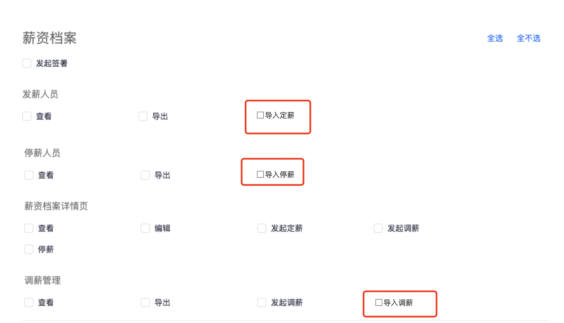客户需要对定薪停薪调薪的导入权限做精细控制,有些角色可以查看页面但不能进行导入操作。目前系统没有将导入权限与页面查看权限做分割。