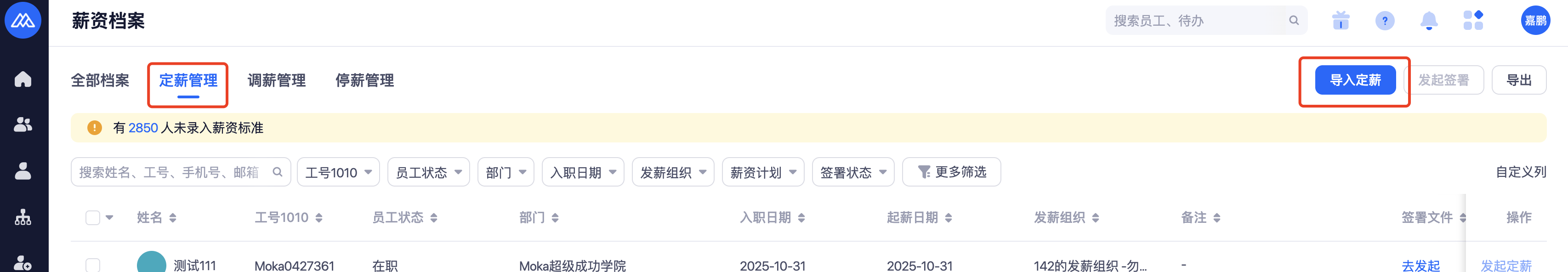 发薪人员-导入定薪:控制“导入定薪”按钮的显隐,勾选权限时展示按钮