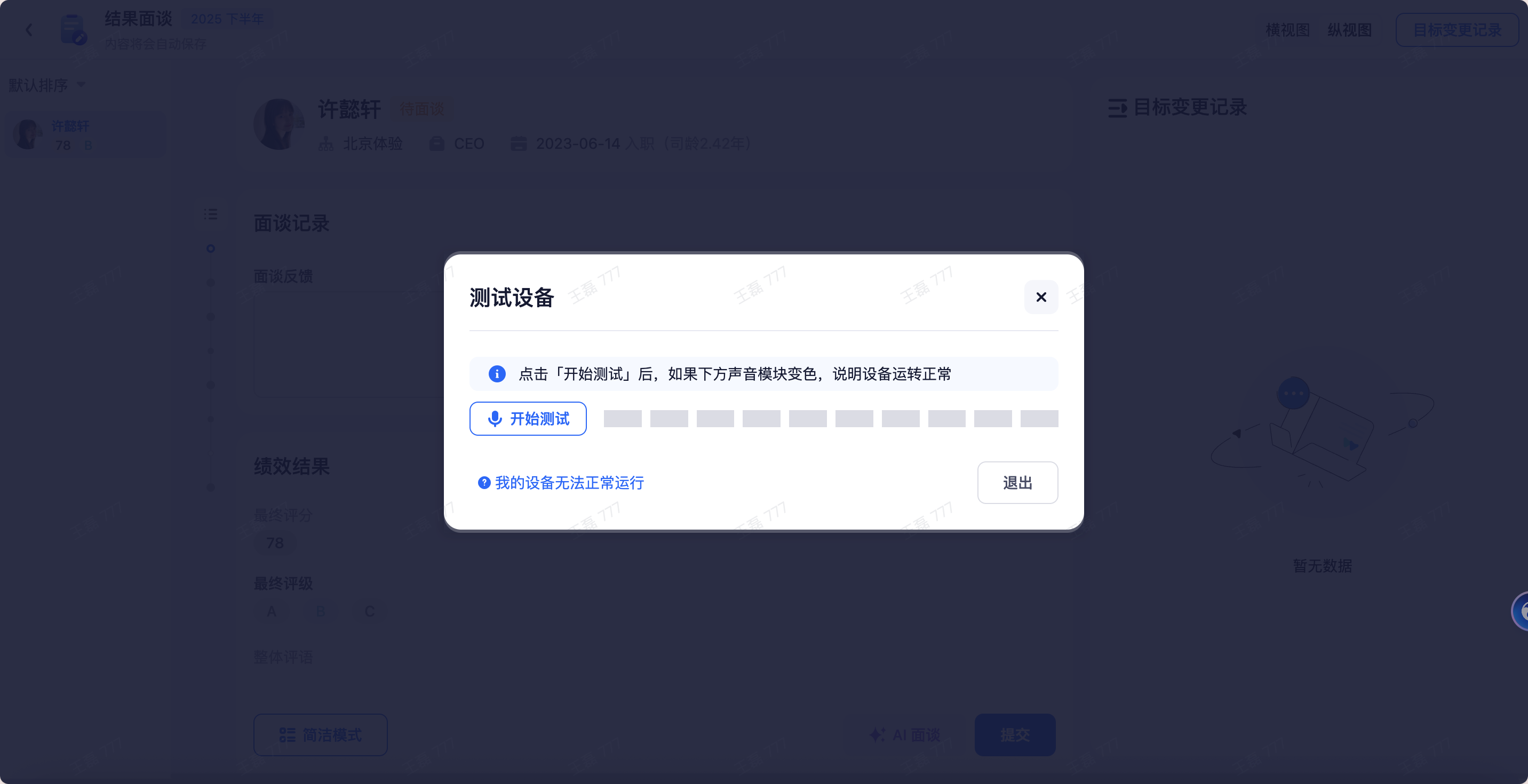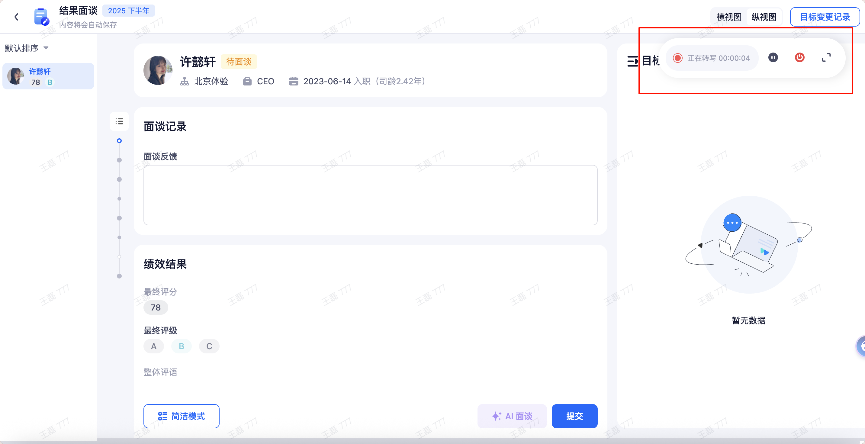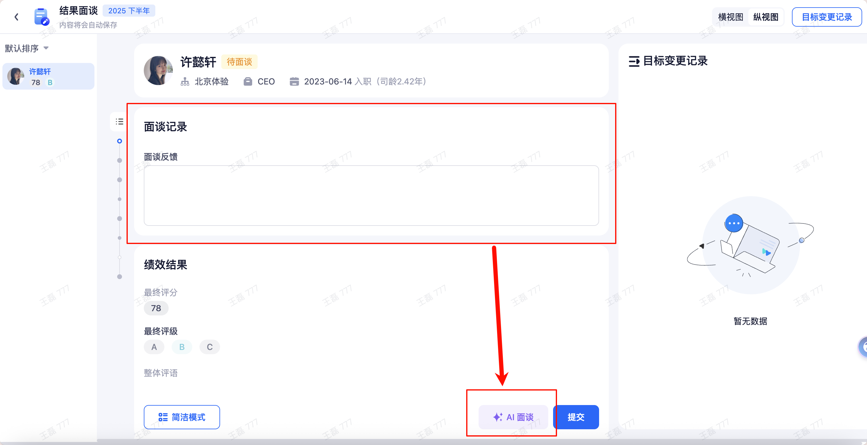 同一员工的同一个结果面谈环节,仅可进行一次AI面谈