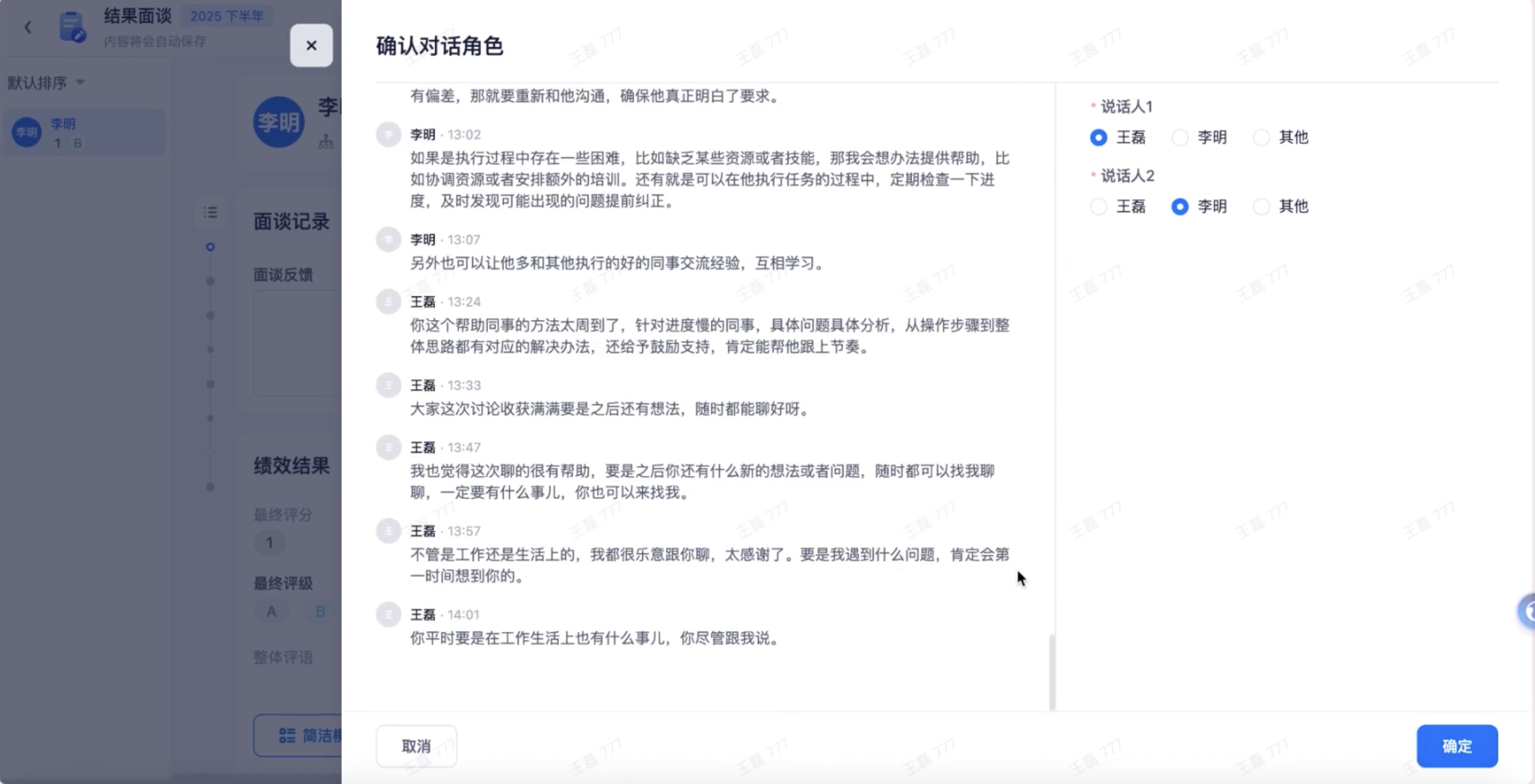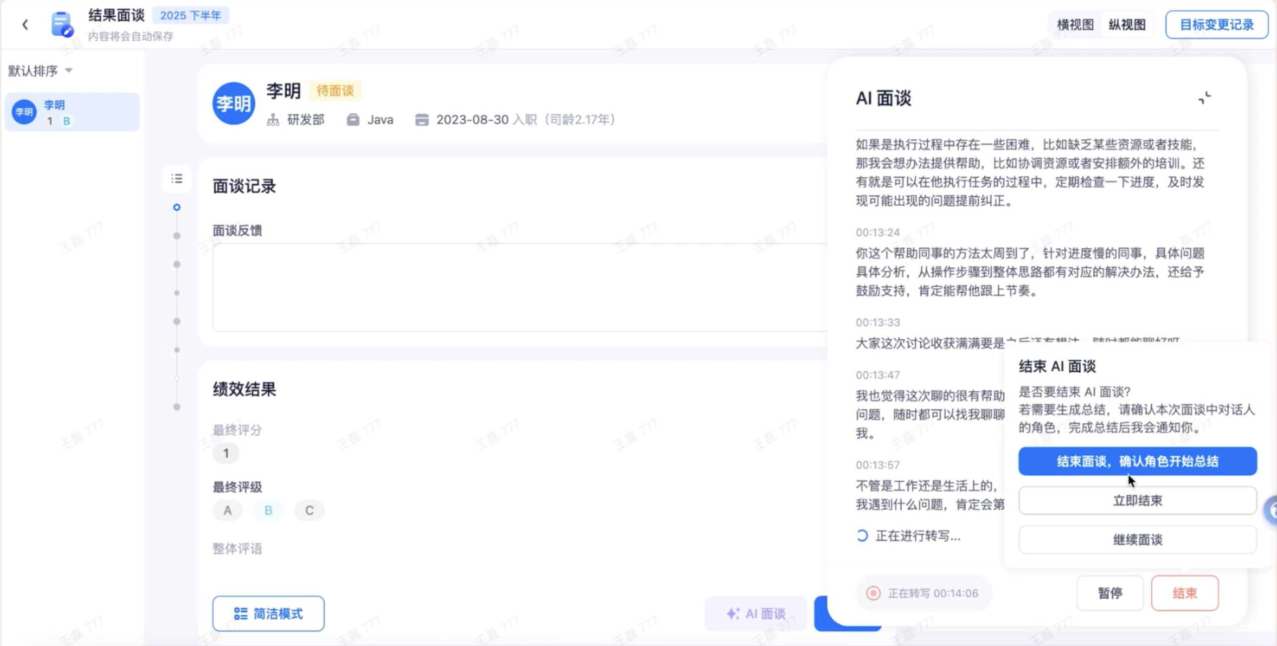 AI辅助记录面谈内容,并自动生成结构化纪要,帮助面谈者更专注于面谈过程本身