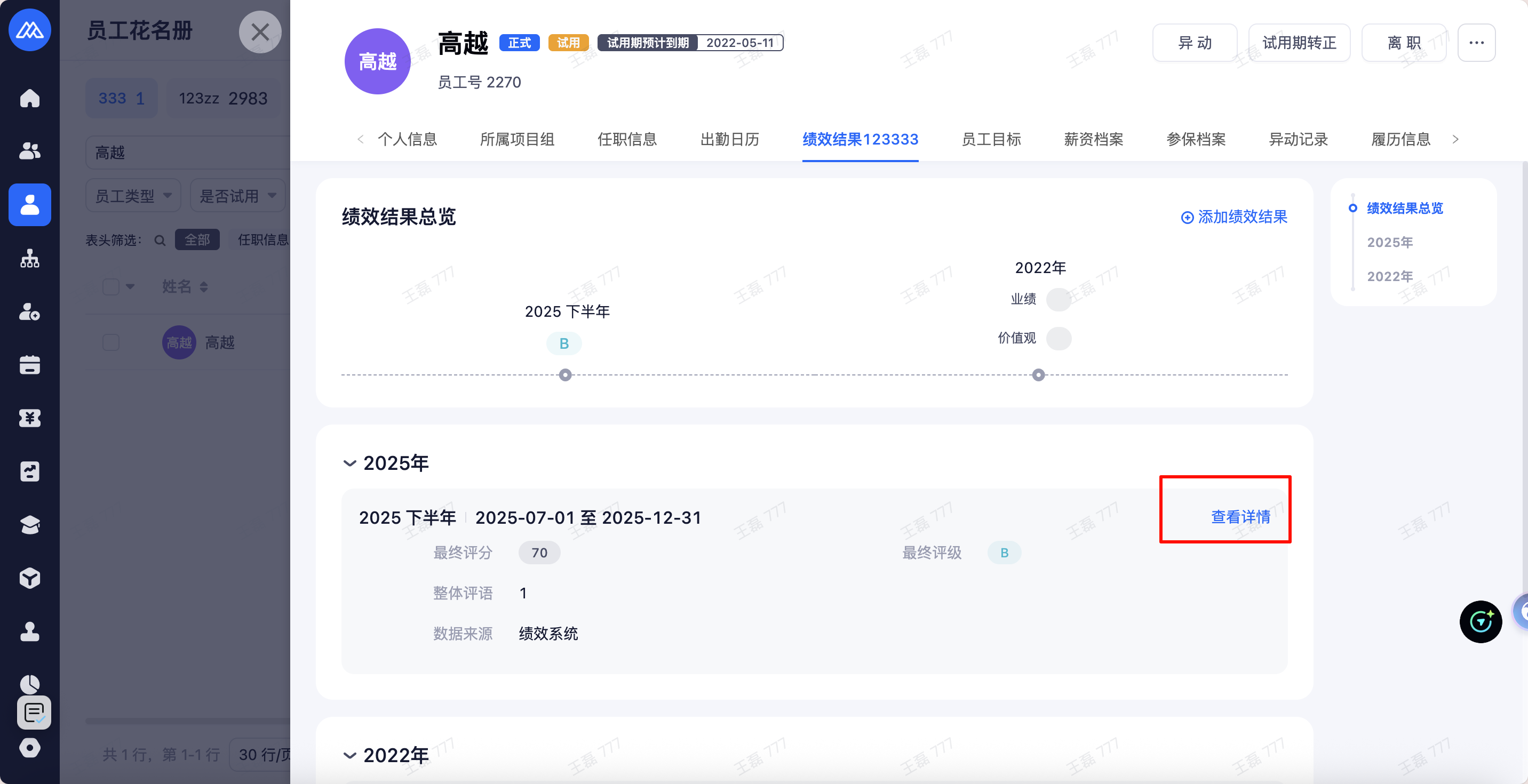 花名册-员工详情页-绩效结果-查看绩效详情 -> 面谈记录