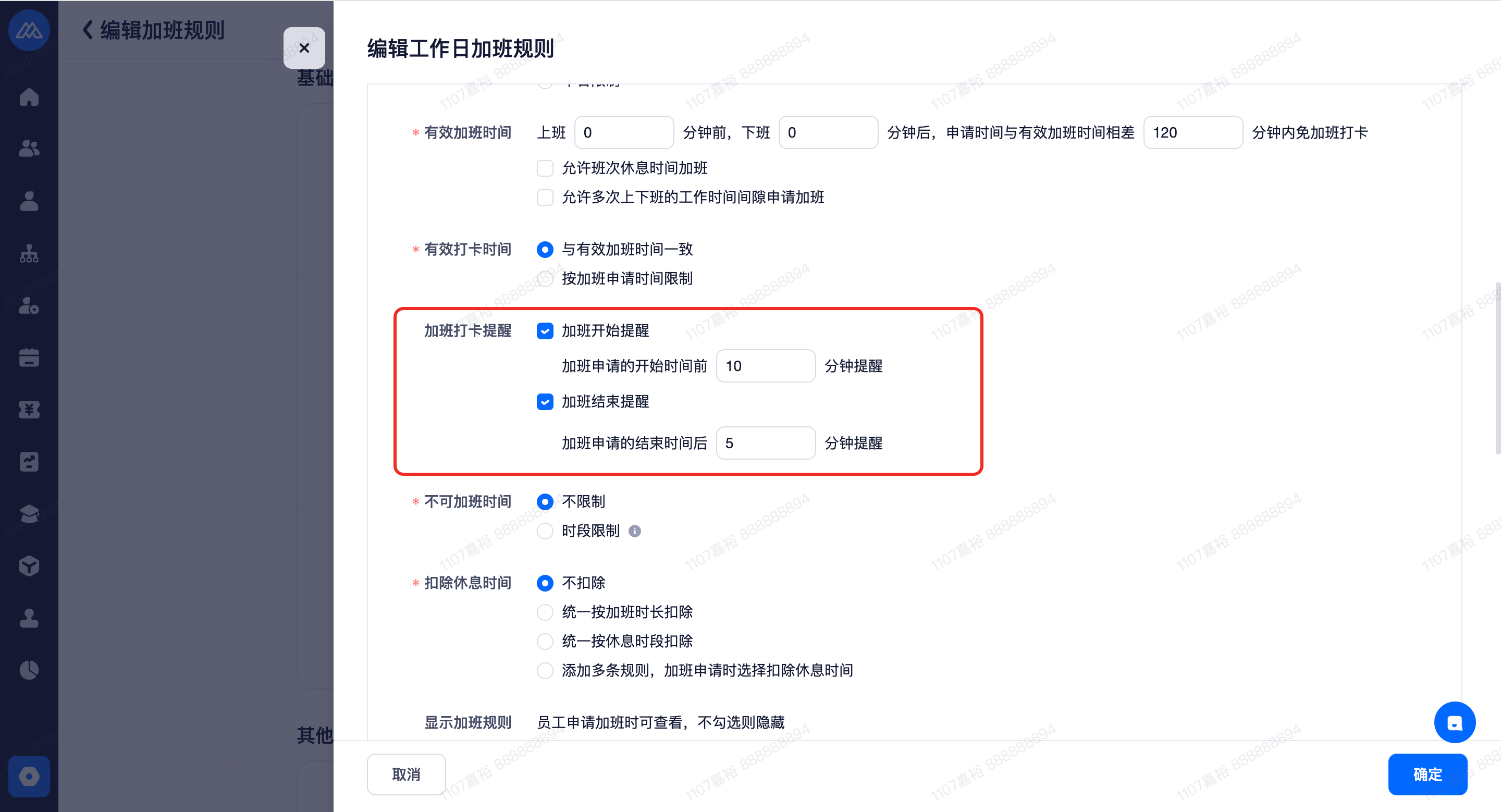 加班开始提醒:加班申请的开始时间前N分钟提醒