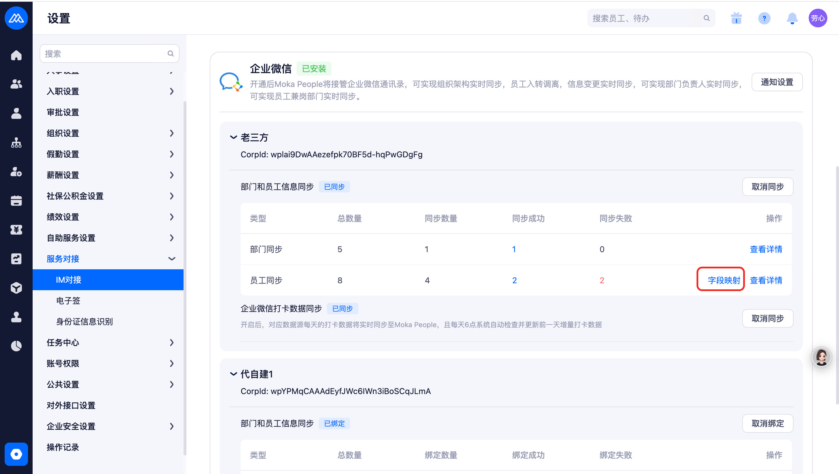 3、【People 后台】查看/修改每个 IM 同步的部门&员工