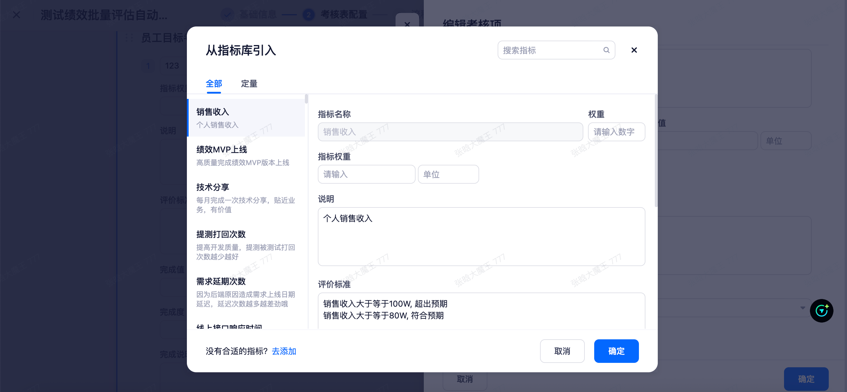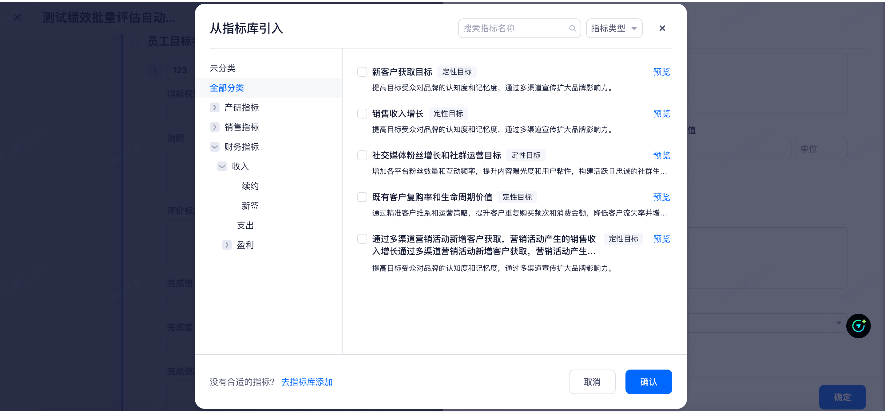 支持按指标分类展示,支持搜索 PS:分类仅会展示员工适用指标的分类 |