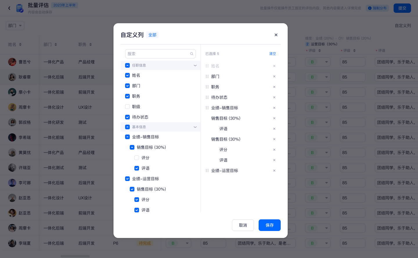 自定义列 PS:支持选择一下为空字段进行隐藏,目标下多个评估字段,可按字段隐藏 |