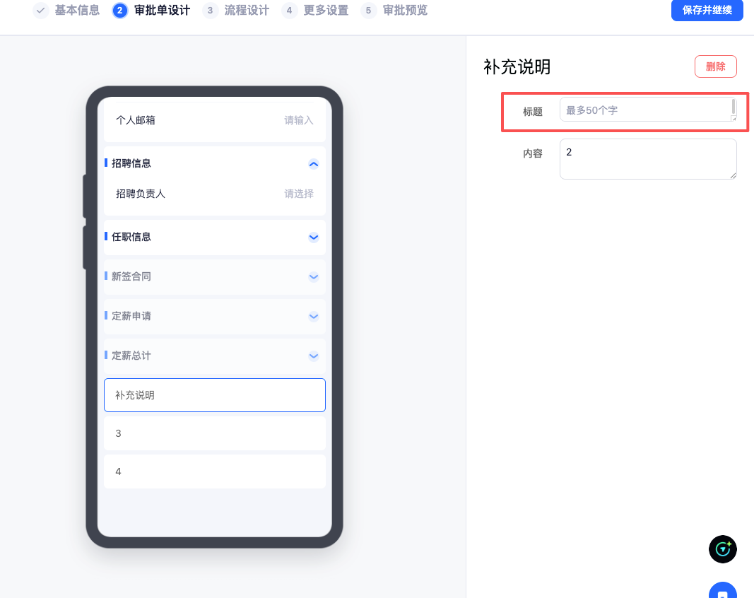 审批补充说明字段不支持自定义标题,导致一些下游场景多个补充说明内容时无法区分(如:自定义打印模版)