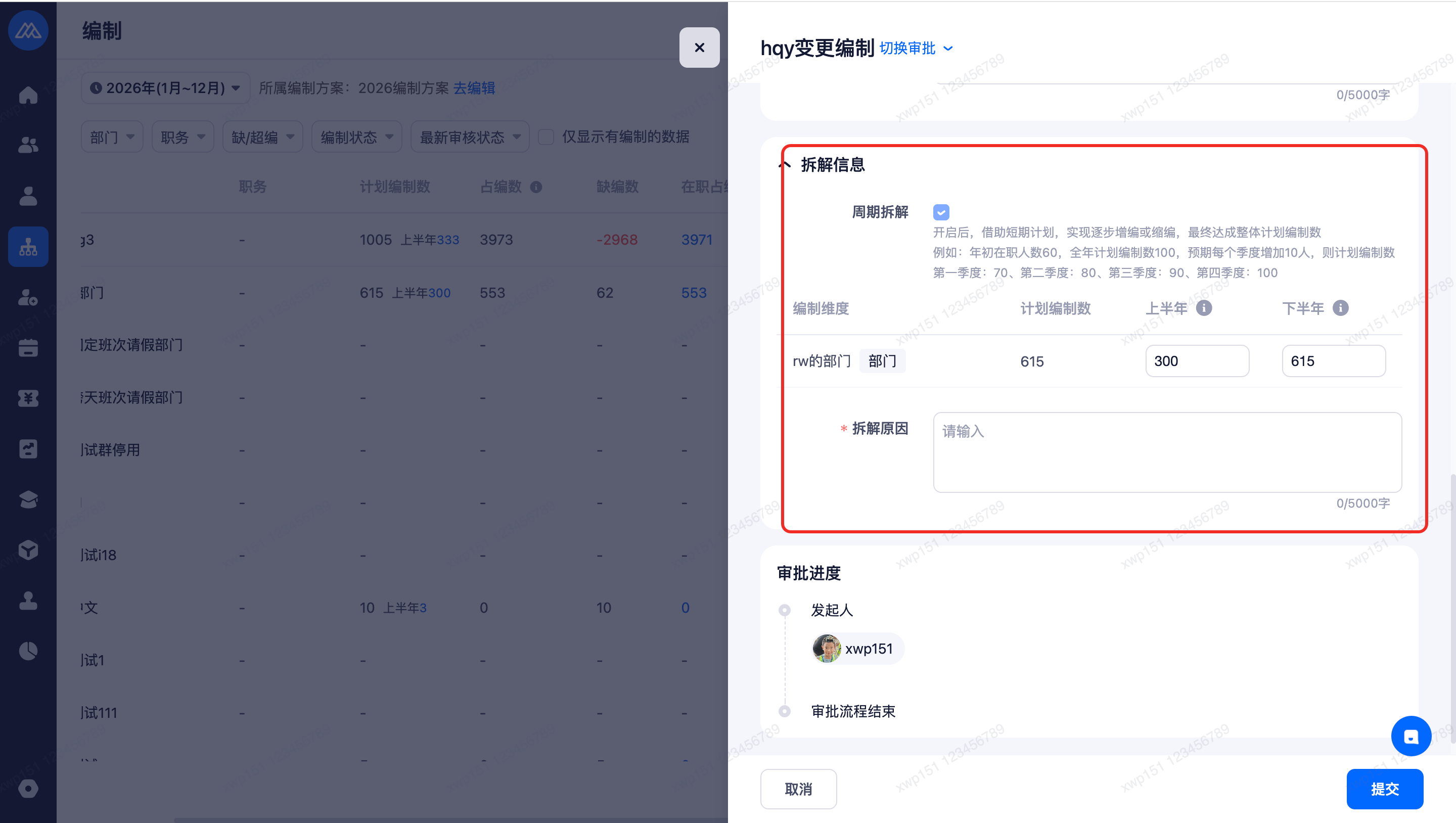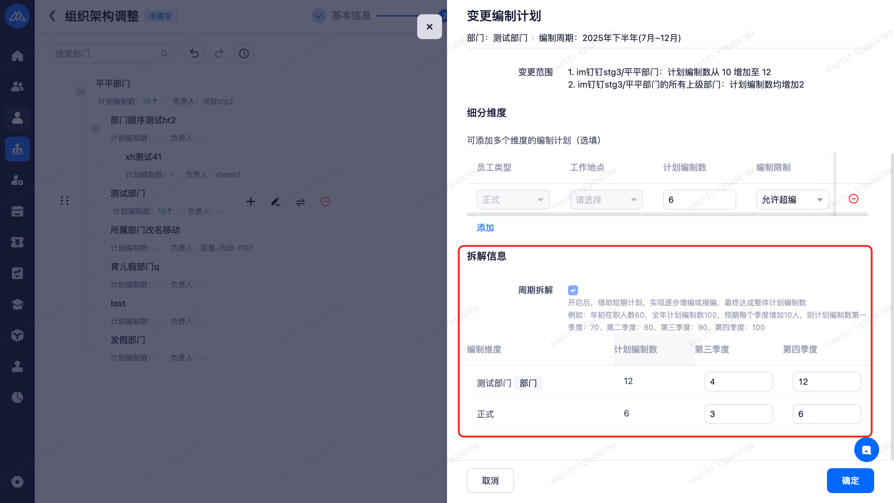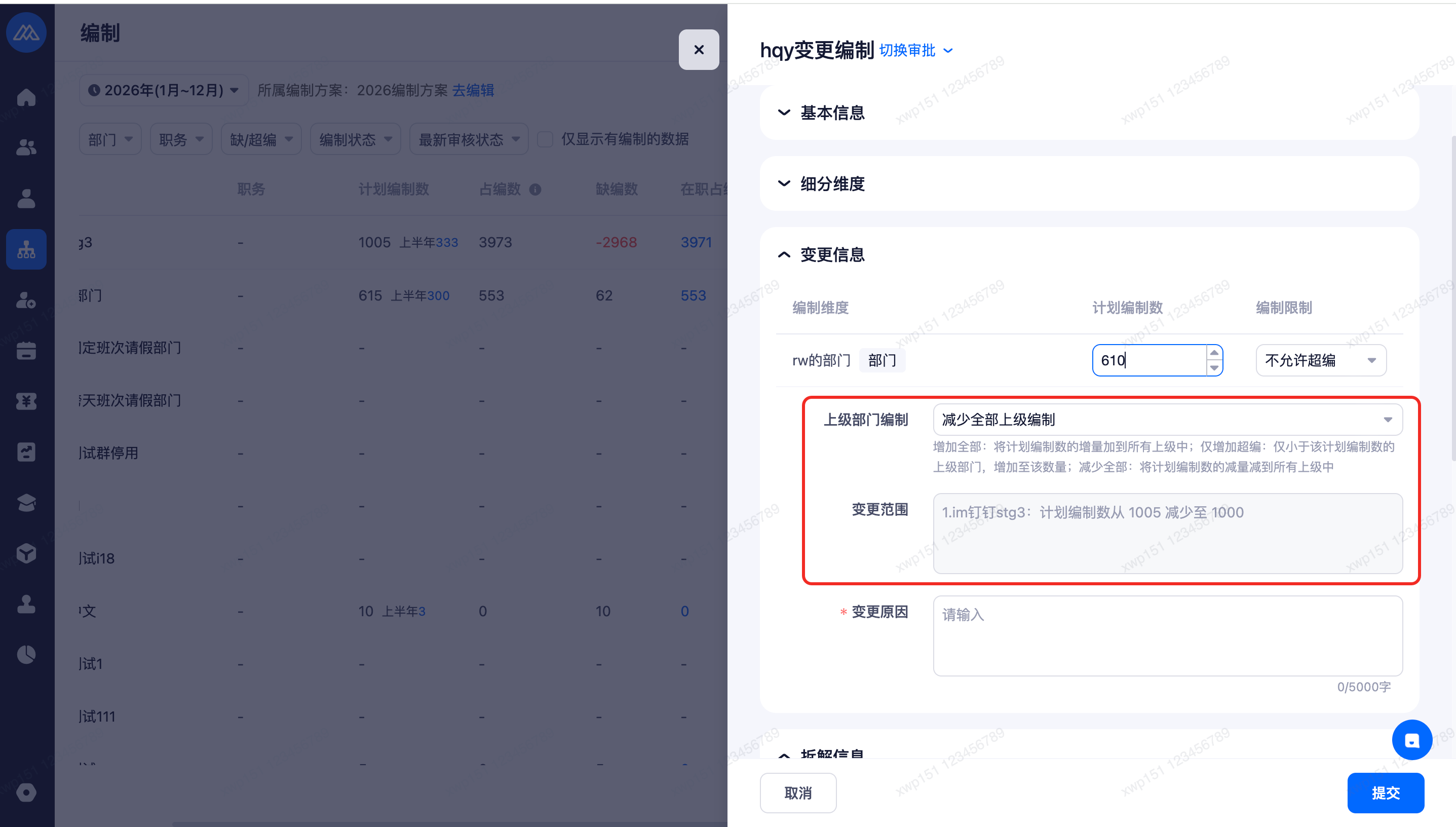 升级内容 1:编制变更支持同时减编上级部门编制及拆解周期&组织架构调整时支持拆解周期