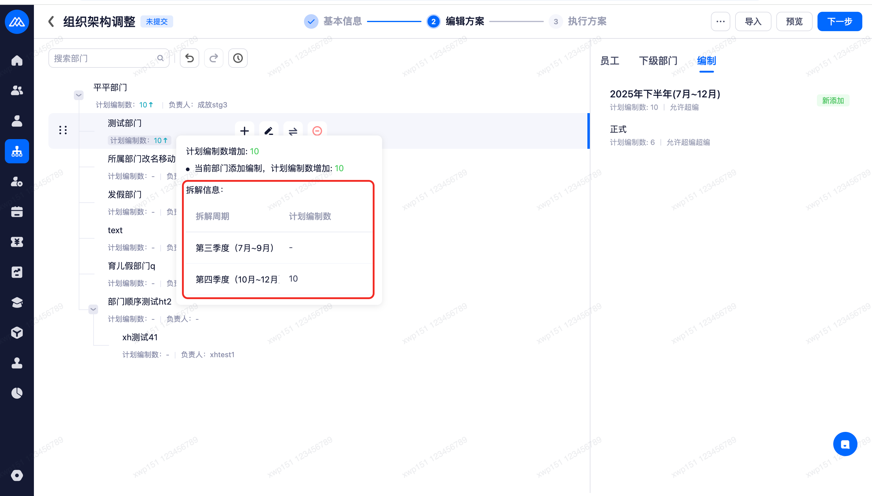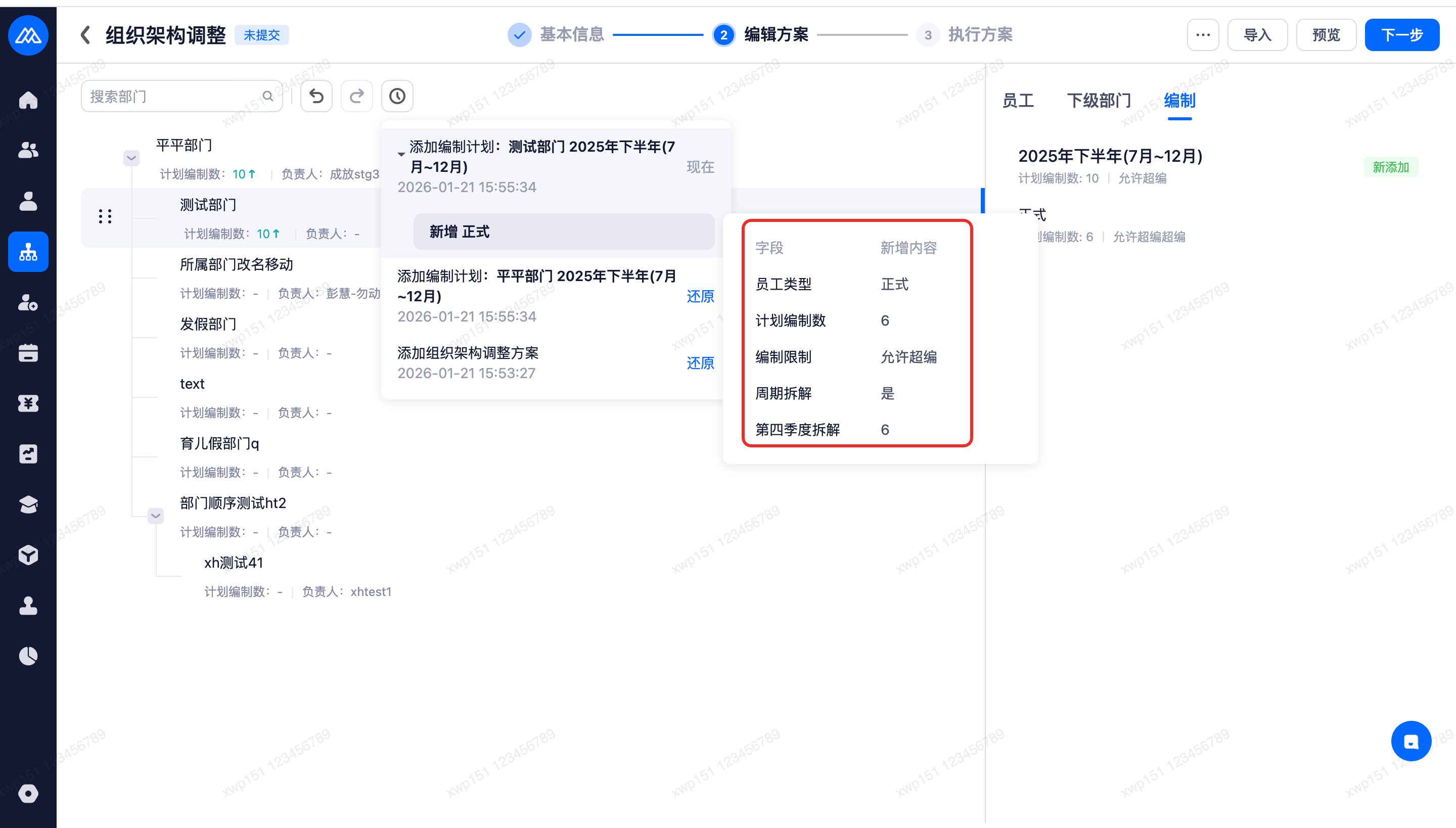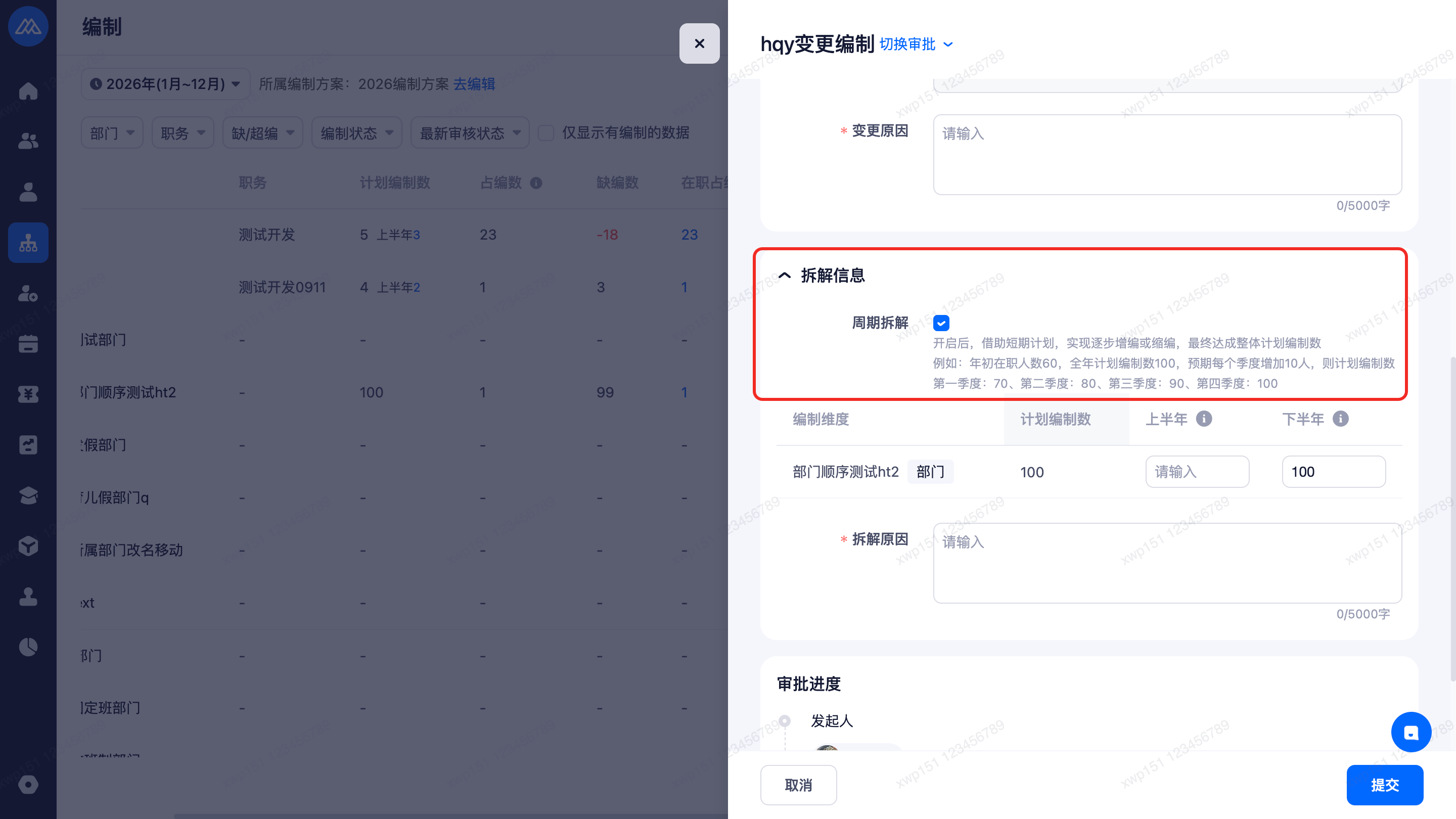 升级内容 1:编制变更支持同时减编上级部门编制及拆解周期&组织架构调整时支持拆解周期