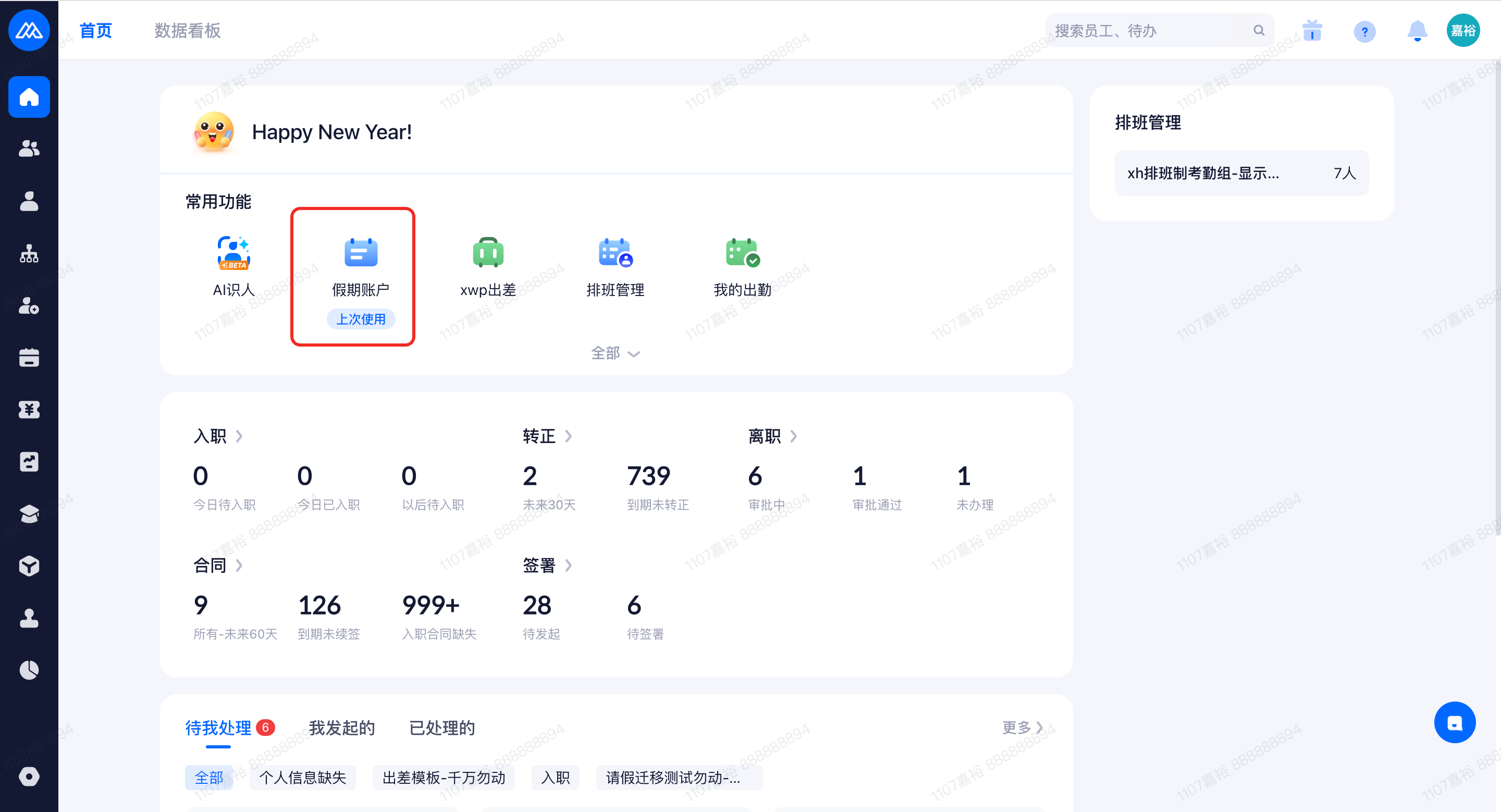 仅拥有假期账户查看权限的员工可见【假期账户】入口,查看权限以假期账户适用范围圈定的员工范围为准