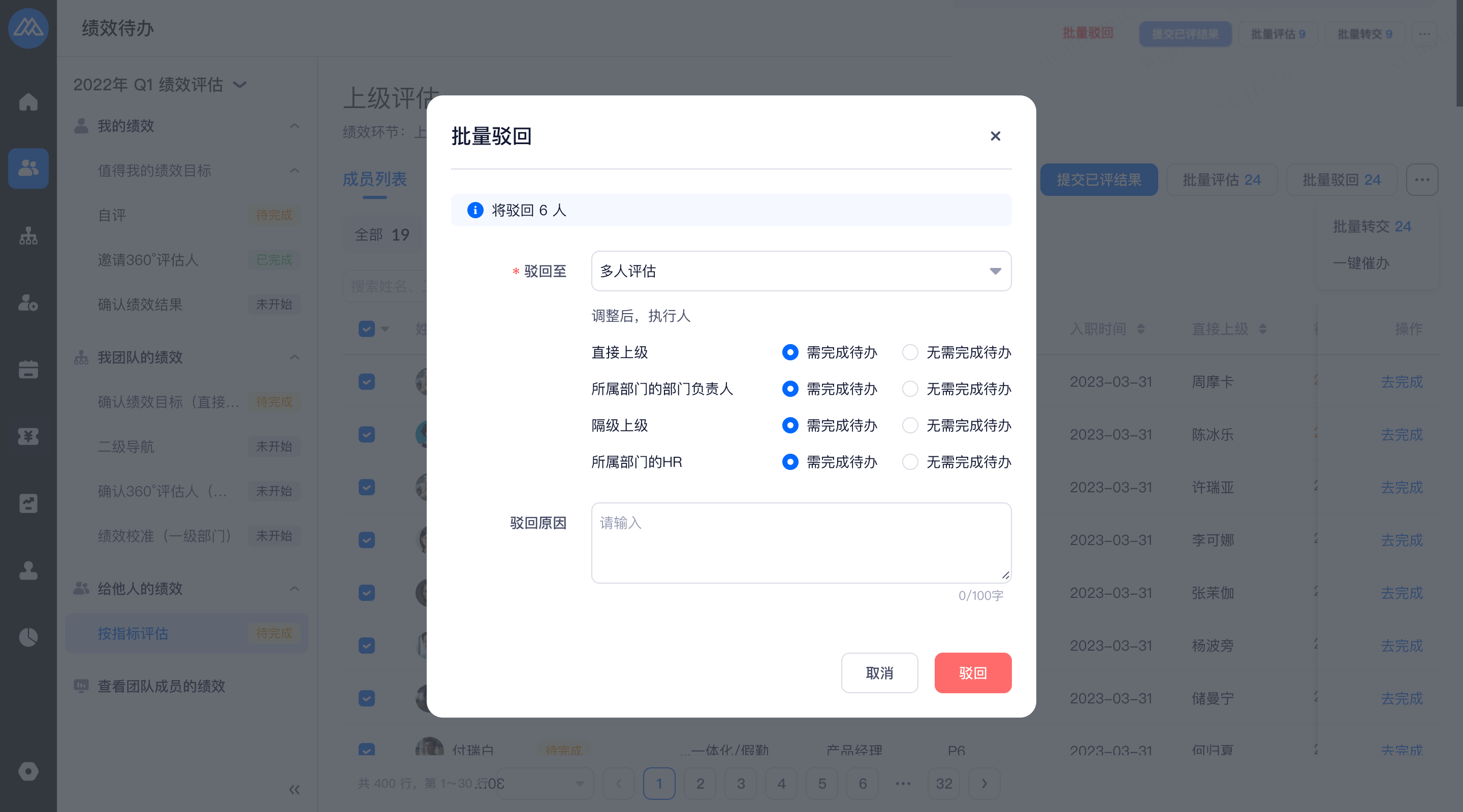 升级内容 1:评估环节支持批量驳回
