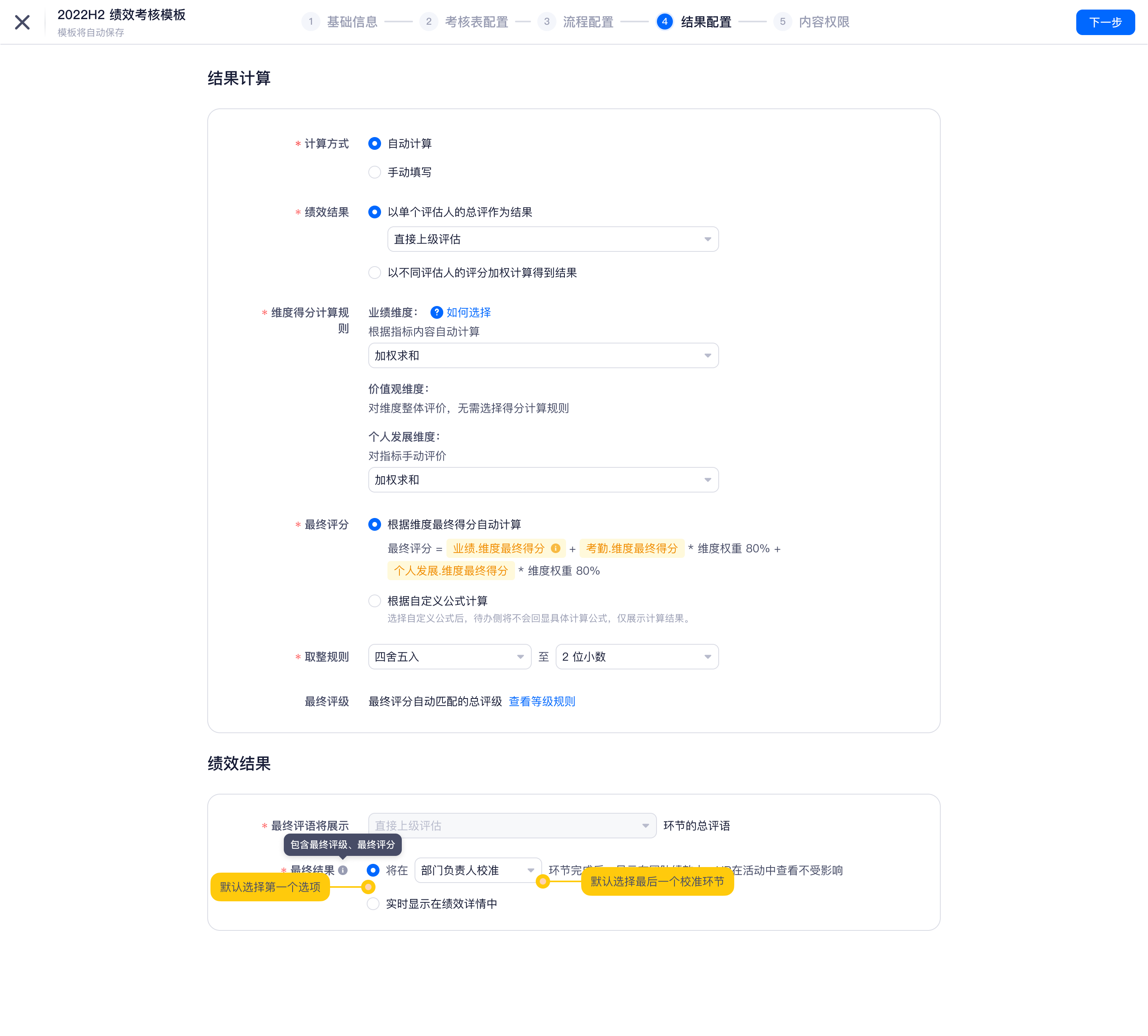 【绩效-绩效模板-结果配置】