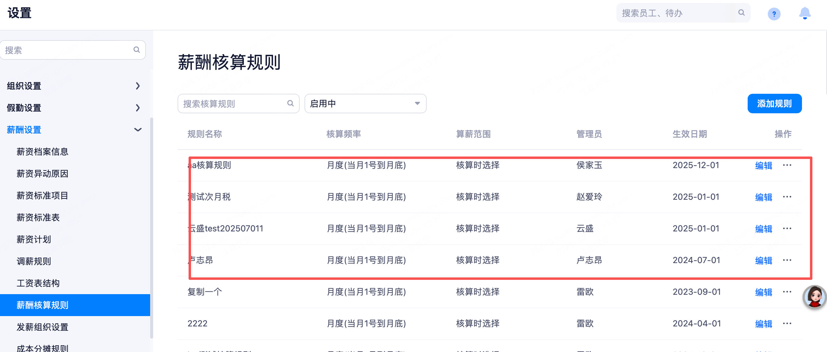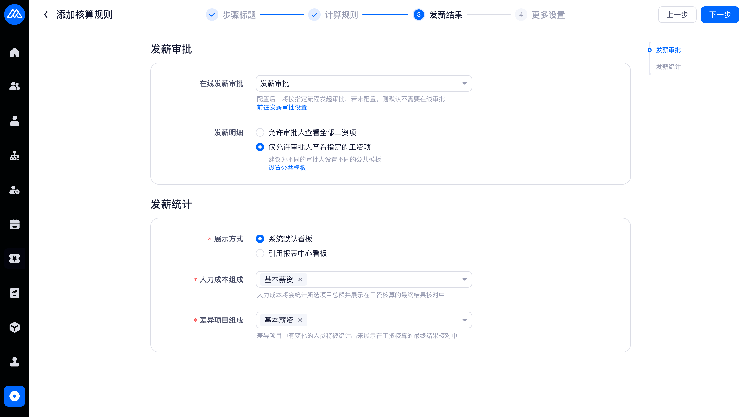 发薪明细支持控制审批人是否可见默认列表,配置在【薪酬核算规则-发薪审批】中