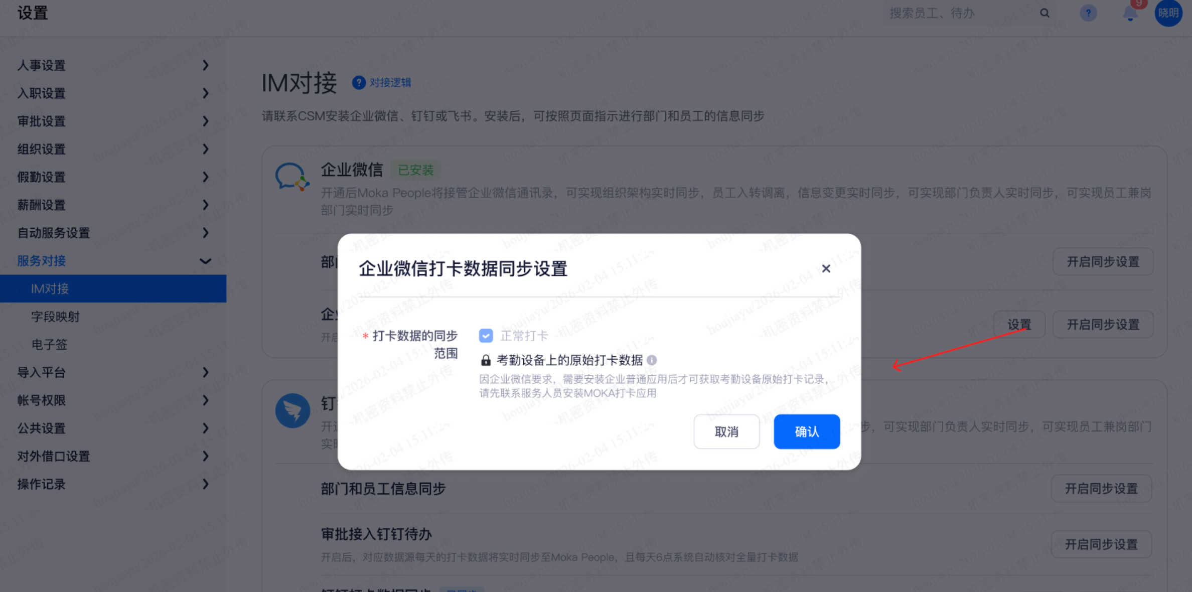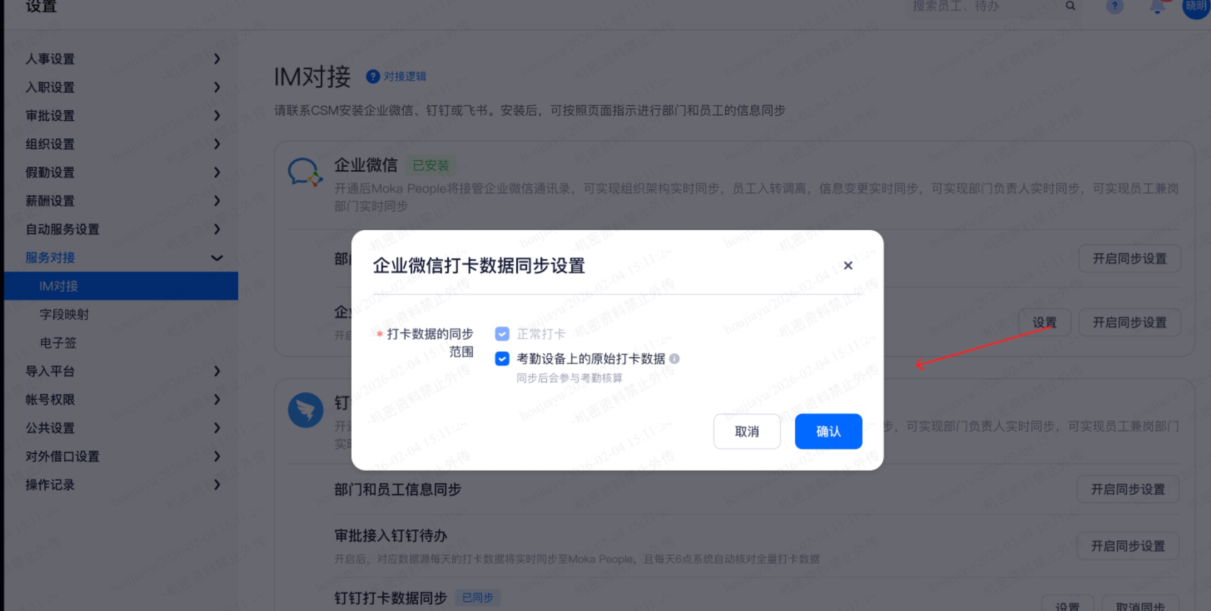 企业微信打卡数据同步增加设置