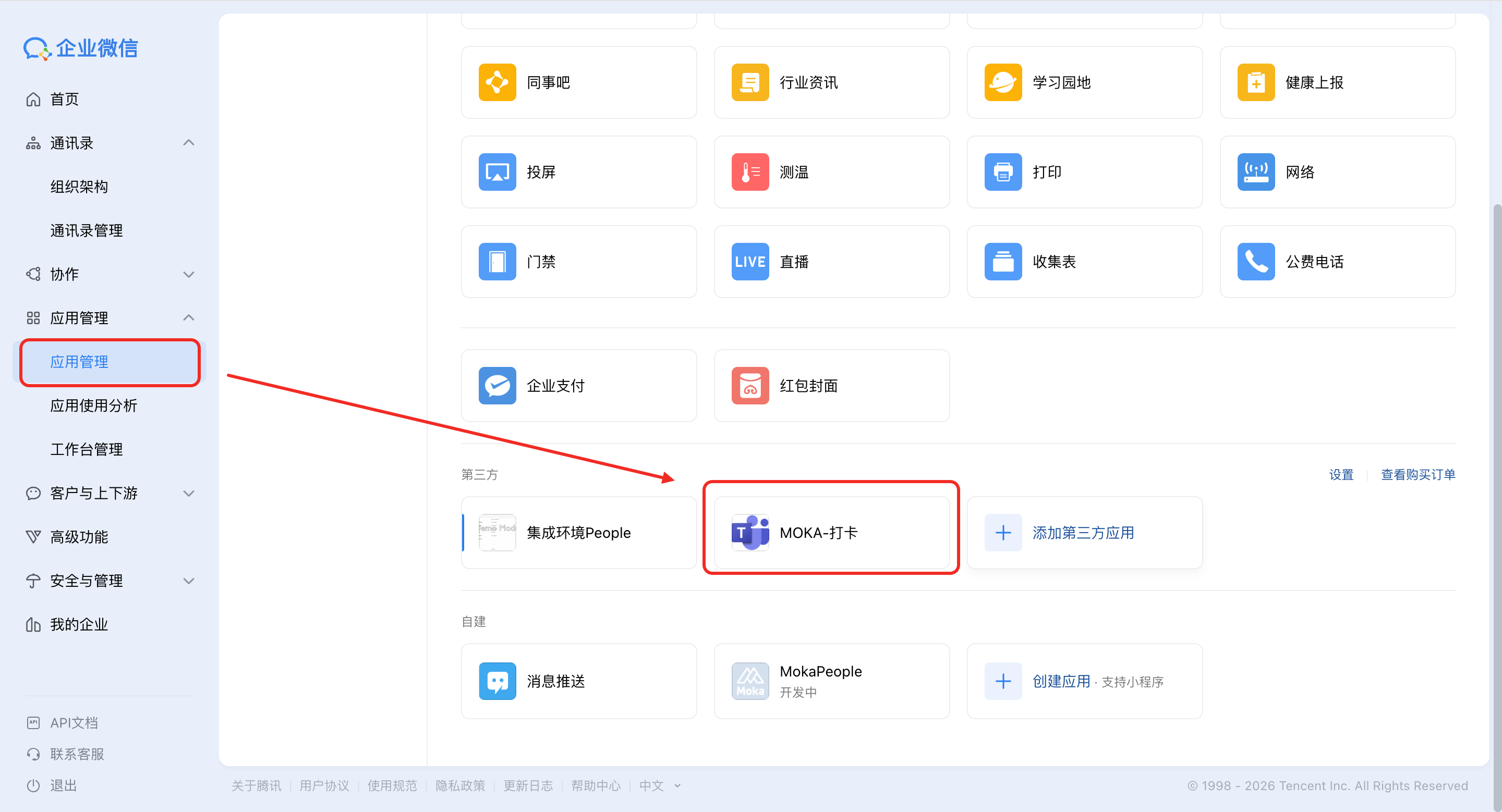 进入弹窗后会检查当前租户是否安装MOKA打卡应用