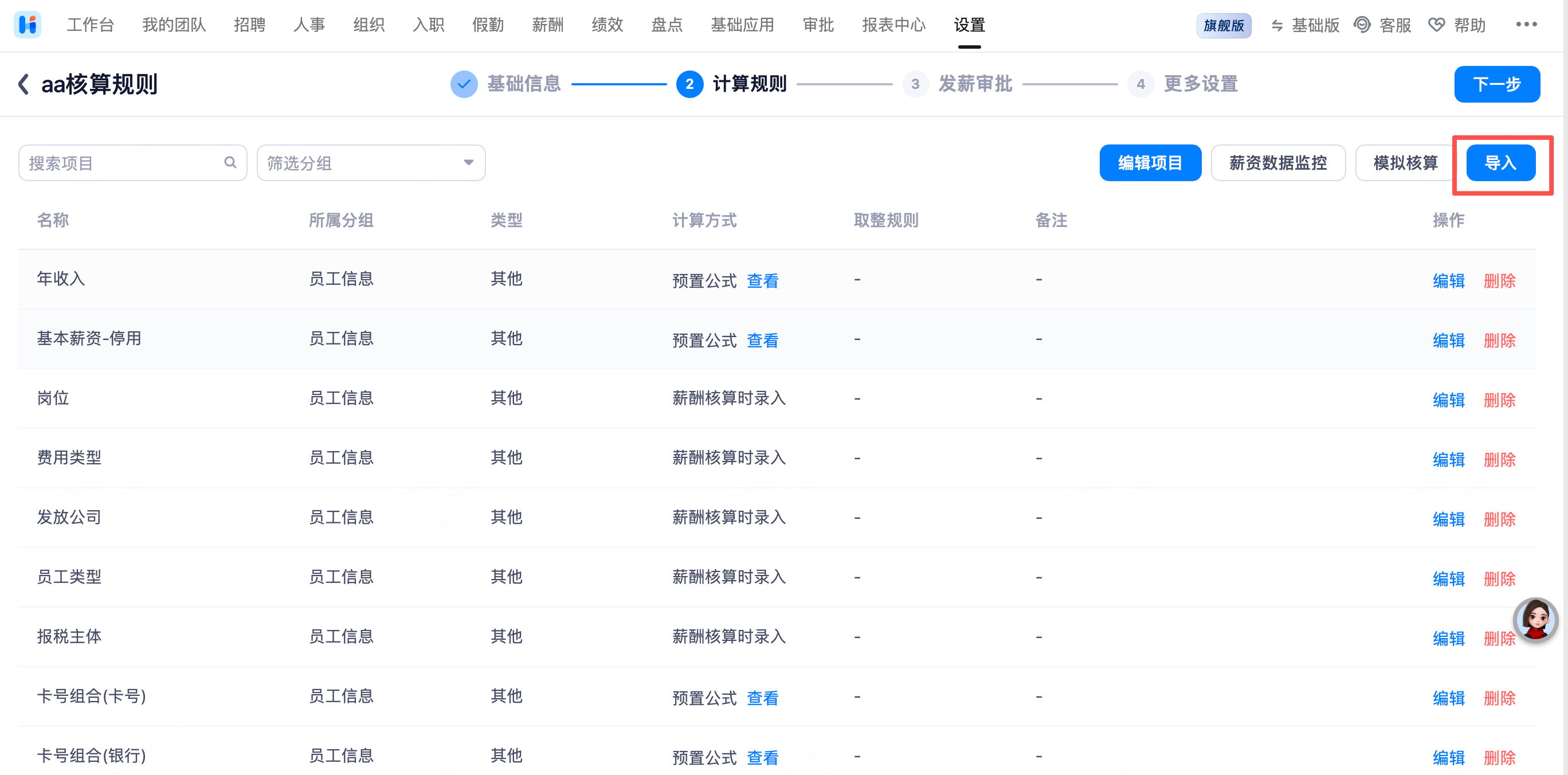 创建「薪酬核算」或选择所需导入公式的「薪酬核算规则」(必须先创建好核算规则,才能导入时更新写入)