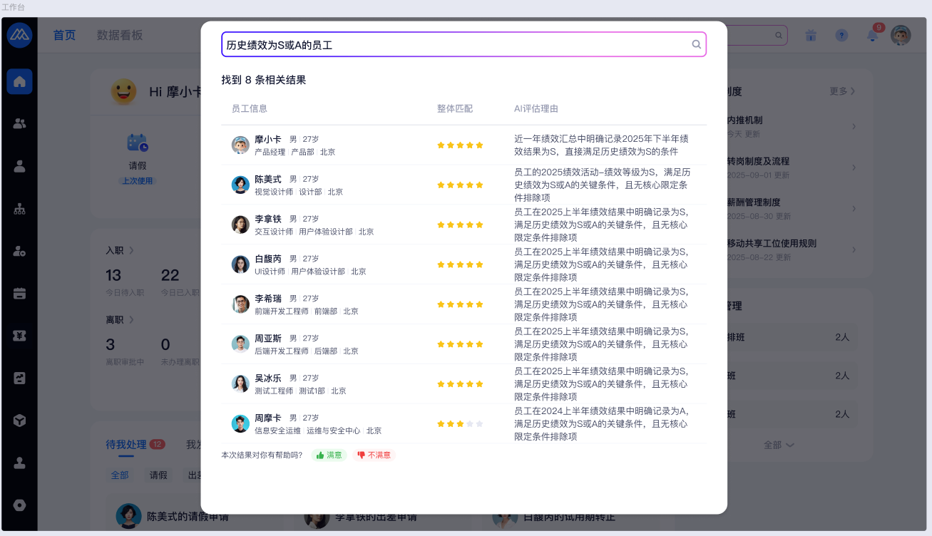 AI识人附件内容不支持识别,以及结构化数据搜索和花名册或对应功能场景内搜索能力重叠,导致功能定位和价值不突出