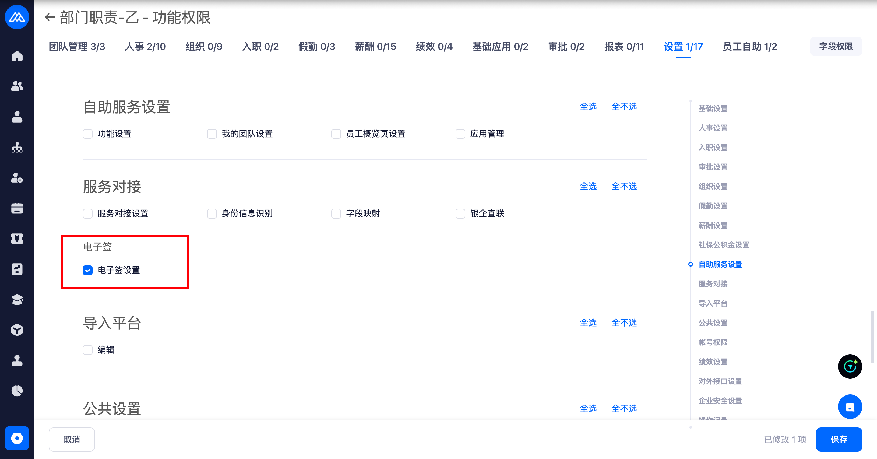 首先,打开电子签开关(入口:设置-服务对接-电子签);